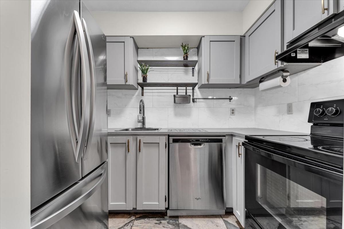 ATTENTION FIRST-TIME HOME BUYERS OR INVESTORS! This gem is located in Guildford, which is central to everything. You are welcomed into a bright, open space with engineered maple hardwood floors when you enter. The living room has a fireplace with beautiful tile work and modern light fixtures. The kitchen has ample cabinets and features updated tile and stainless steel appliances. One large bedroom features a custom-built-in desk. This home has a large in-suite storage space as well as spacious closets to keep all your things. Comes with shared laundry, 1 parking, and 1 storage! Functional layout truly uses all the space in the best way. Great pro-active strata, rentals and pets allowed. Close to the shopping mall and Hwy 1. Call to get access or a viewing for this unit today!