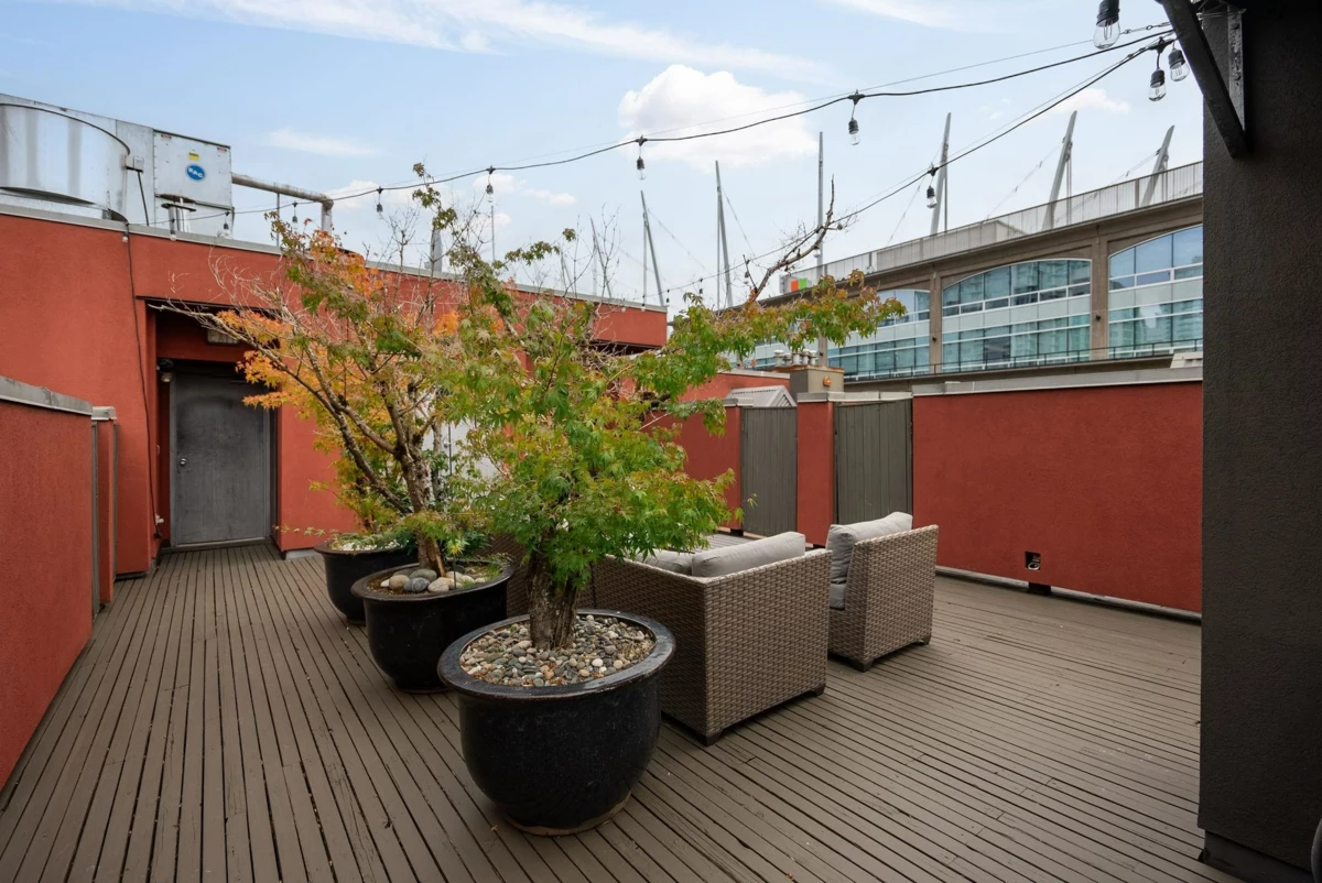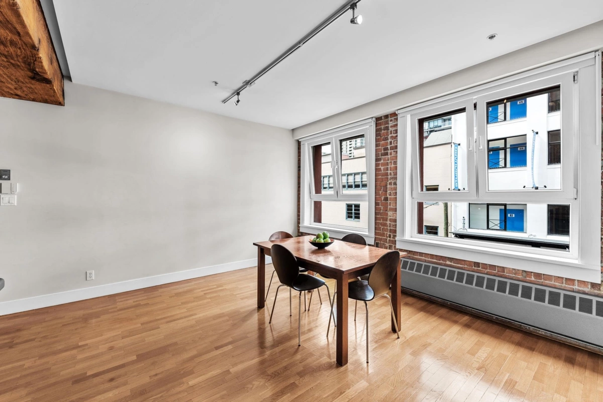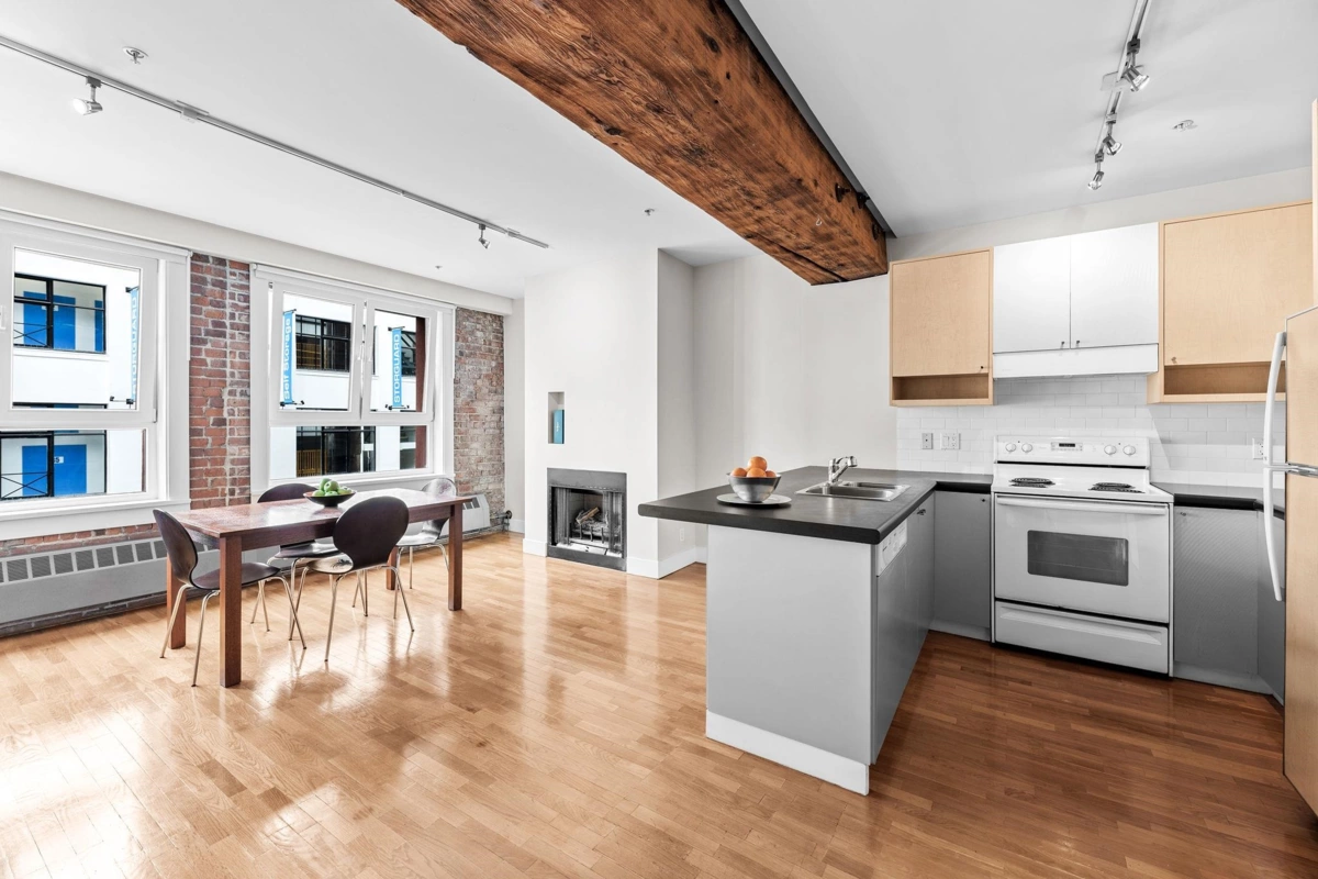 Wow! Incredibly rare opportunity to own a New York-style loft at The Hooper Building in vibrant Yaletown w/ the perfect common ROOFTOP TERRACE w/ stunning city & water VIEWS. This BRIGHT & SPACIOUS loft offers OVERHEIGHT CEILINGS, towering old growth fir beams & exposed 110 year old brick throughout. Efficient plan w/ open CHEF'S KITCHEN, breakfast bar, modern cabinetry & integrated appliances. GAS FIREPLACE, large living & dining, gorgeous hardwood flooring & over-sized windows. SPA-LIKE bath w/ deep soaker tub. Pristine, stylish building, originally built in 1910 and converted to lofts in 1999. Maintenance fee includes HIGH SPEED INTERNET! A quiet part of downtown but steps to The Seawall, Skytrain, shopping & Yaletown's best cafes, bars & restaurants.