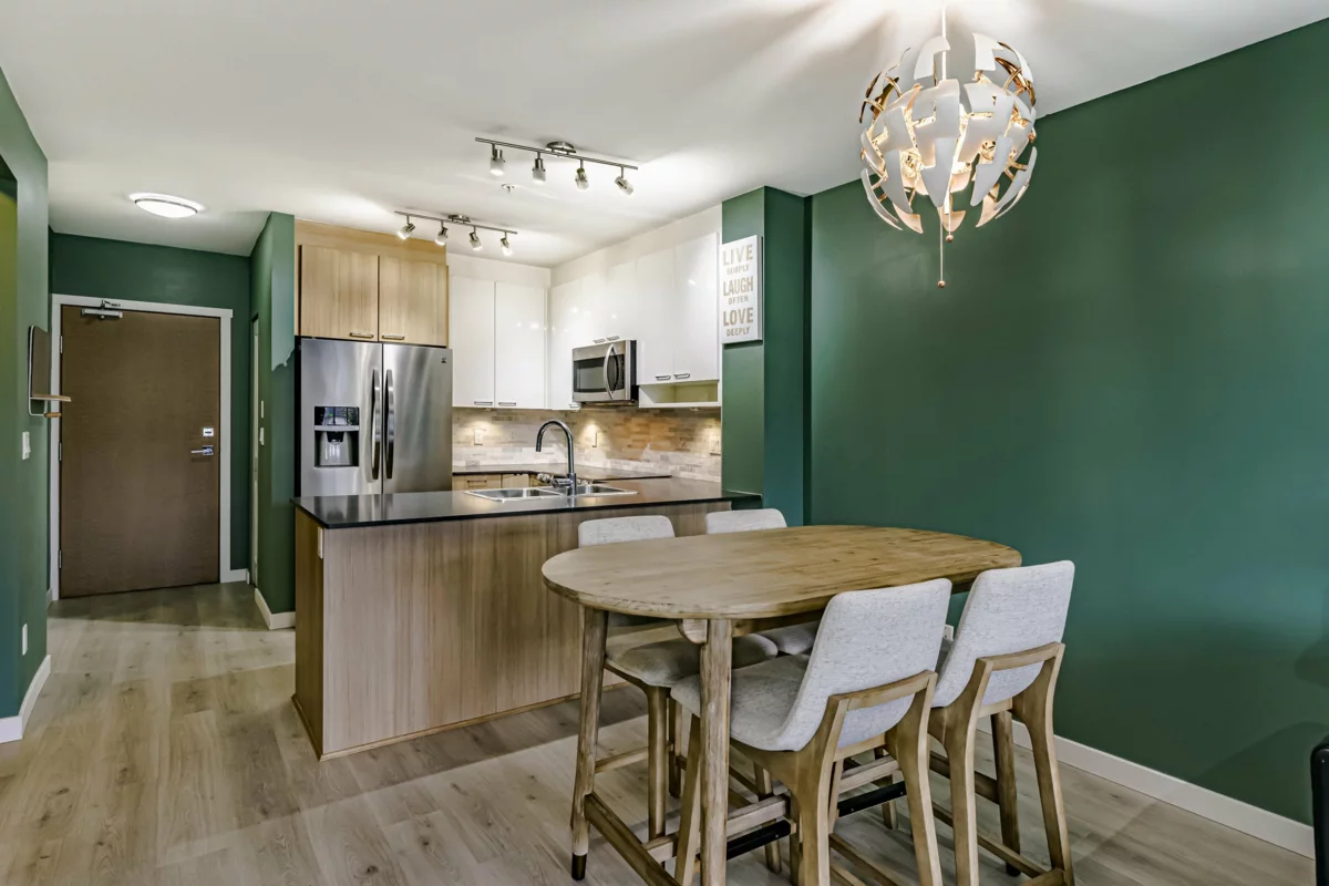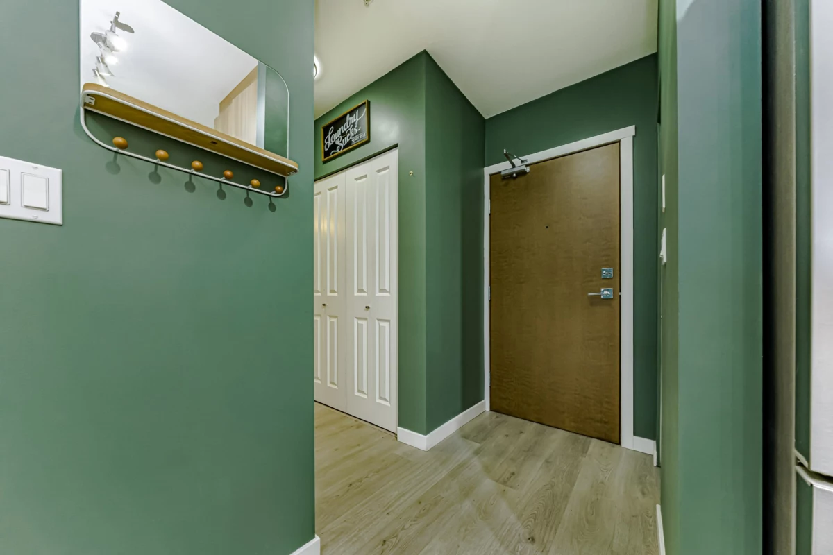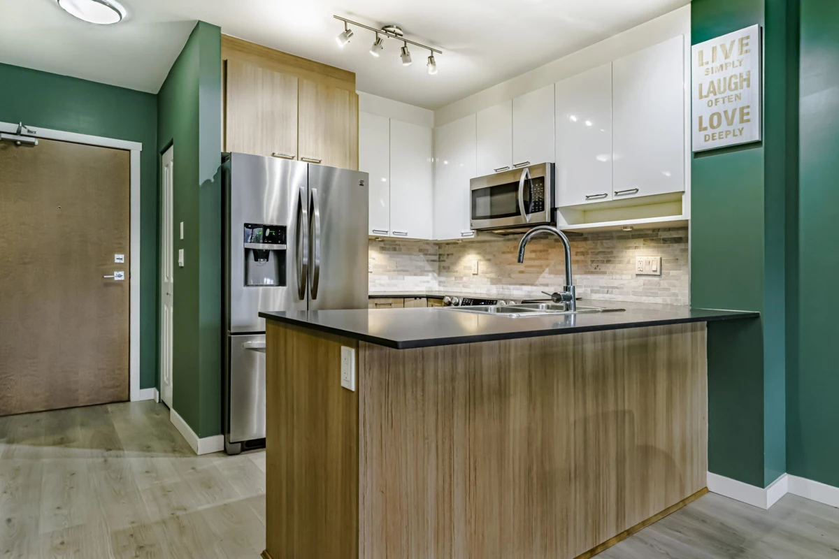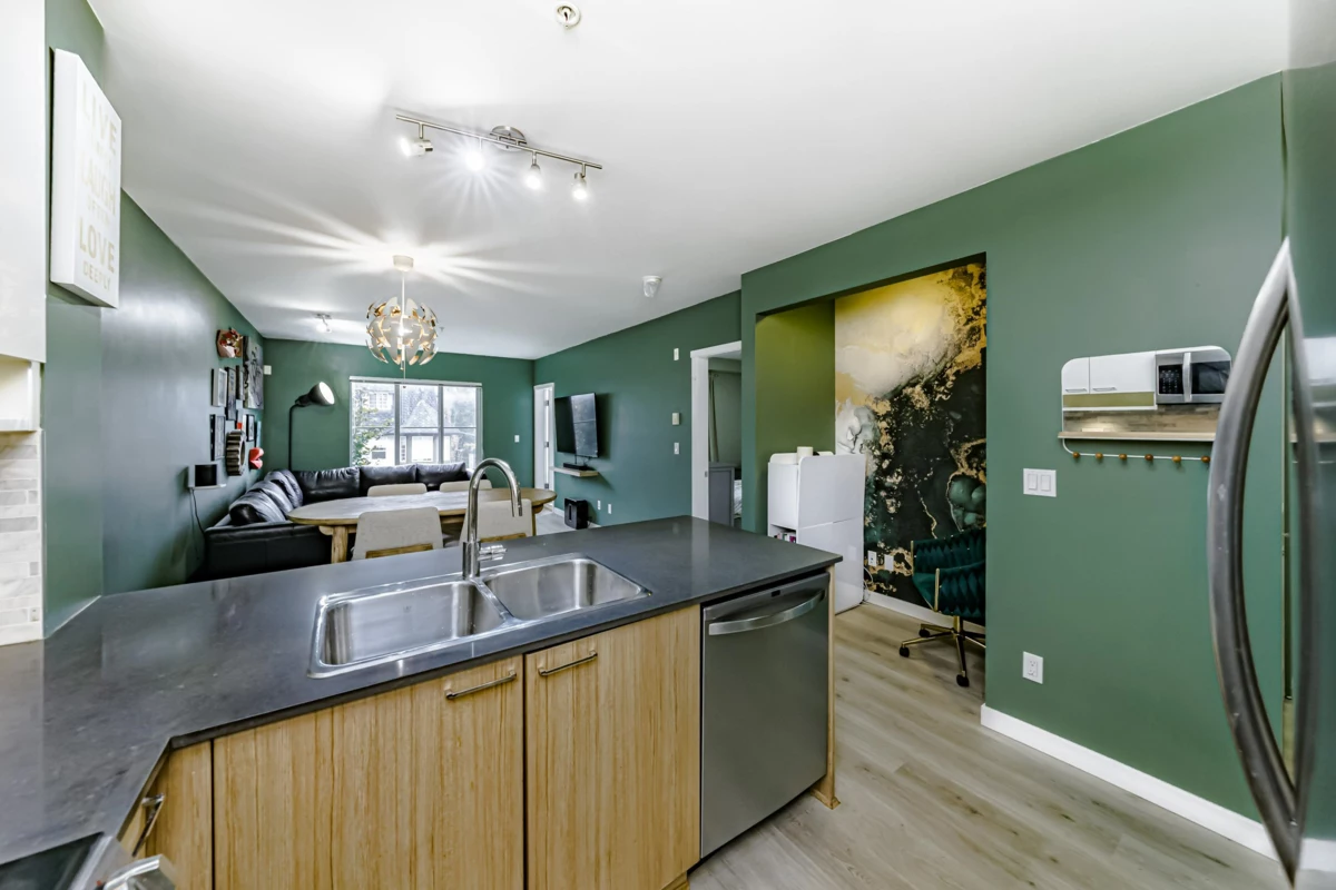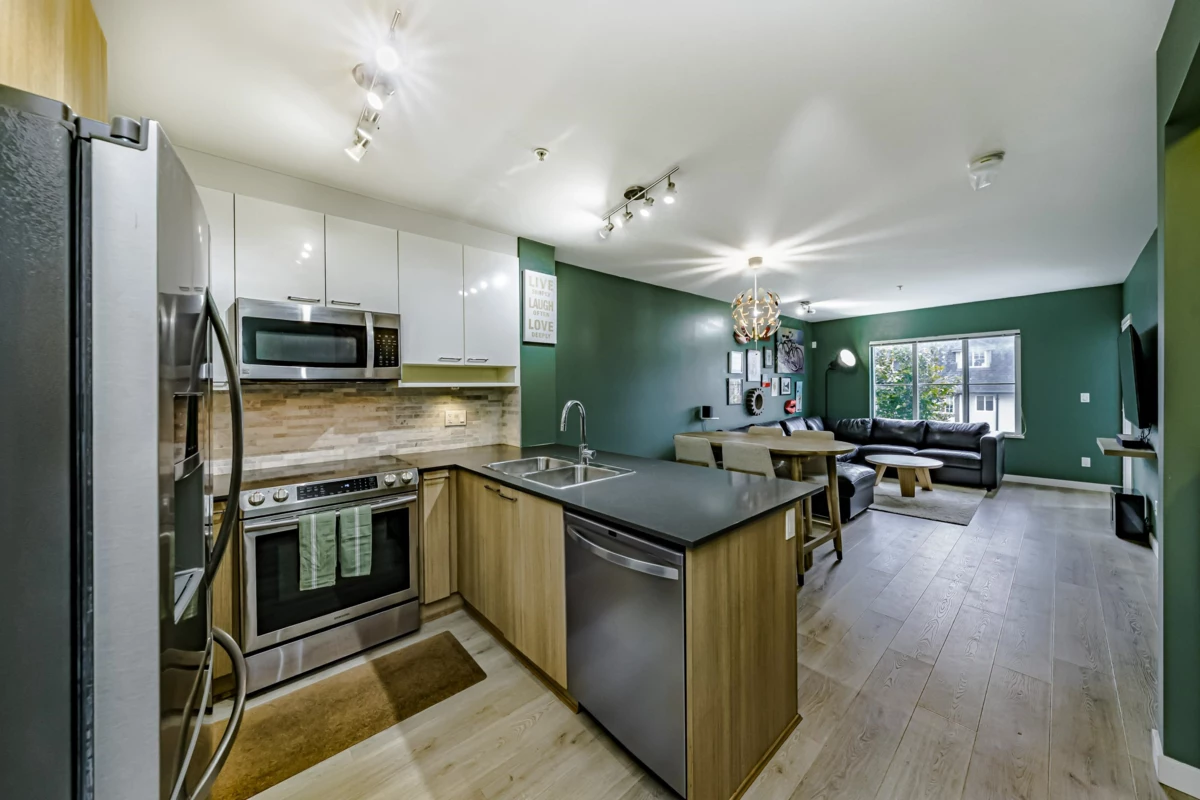 Welcome to this bright and spacious 1-bedroom plus den home built by Blue Tree Homes, offering modern comfort and unbeatable convenience. This beautifully maintained suite features brand new vinyl plank flooring and an open-concept layout filled with natural light. The functional den is ideal for a home office or hobby space. Enjoy excellent building amenities, including a fitness Centre, plus the added bonus of one parking stall and one storage locker. Located in a fantastic neighborhood, you're just steps to shopping, dining, recreation. IKEA, Superstore, Canadian Tire, and more are all nearby. Quick access to Braid SkyTrain Station and the freeway makes commuting a breeze. Perfect for first-time buyers, downsizers, or investors seeking a quality home in a prime location!