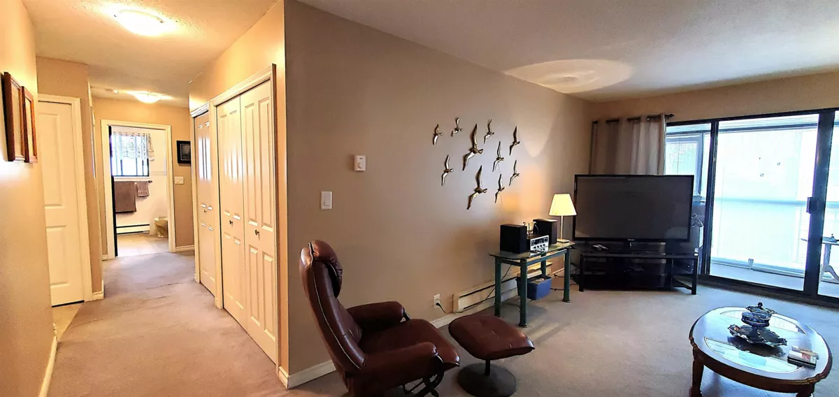 Welcome to Cloud Croft Manor. This well maintained and spotless 2-bedroom, 1-bath condo offers a spacious layout with lots of storage ideal for comfortable living. Located in a well-run, adult 55+ lifestyle complex, it features IN-SUITE LAUNDRY and a generous ENCLOSED 23' x 6', East facing SOLARIUM. Residents enjoy access to a games room, a lounge area with balcony access and a friendly community atmosphere. The unit comes with one underground parking stall, storage locker, and ample visitor parking available. Centrally located near shopping and transit, this PET-FRIENDLY home welcomes one lap-sized dog and/or two cats, making it a perfect blend of convenience, community, and comfort.