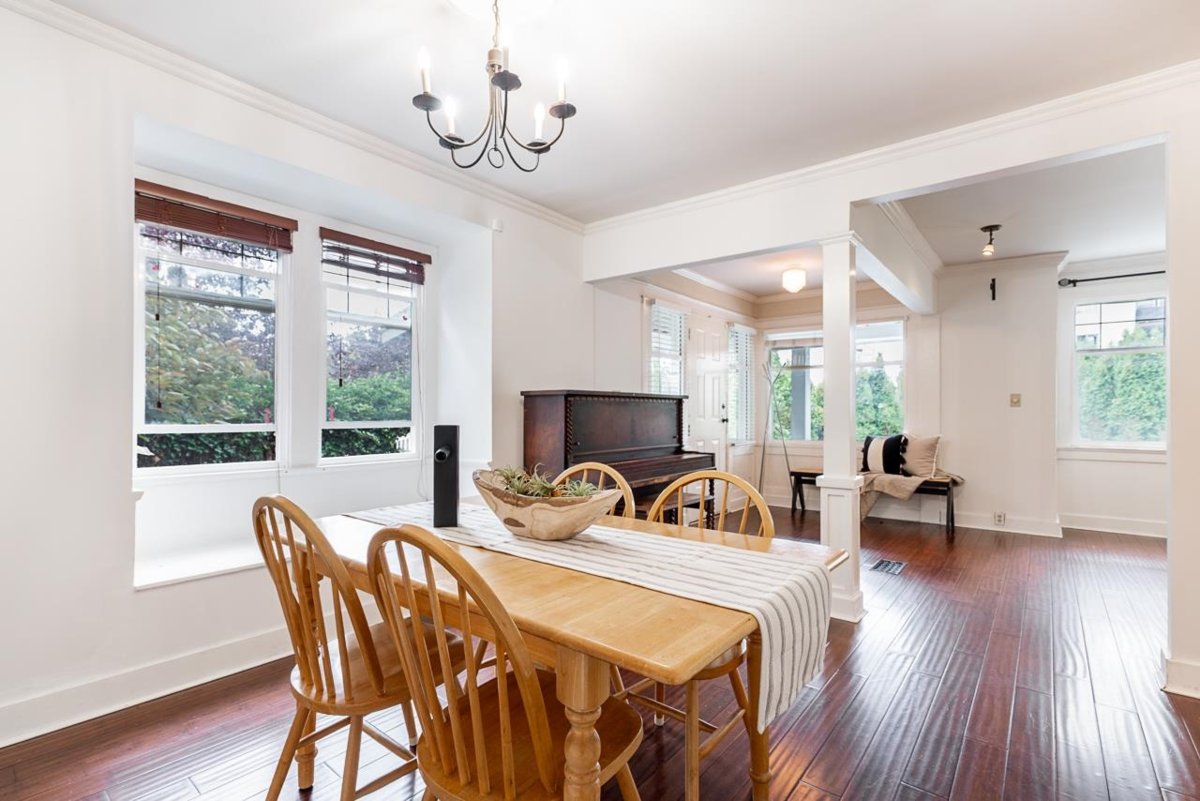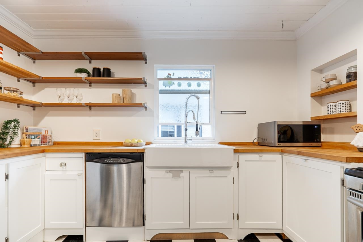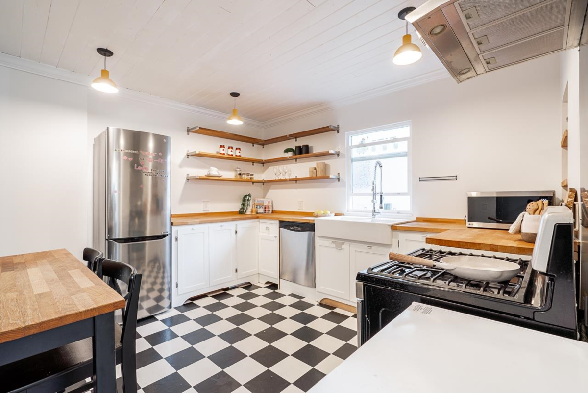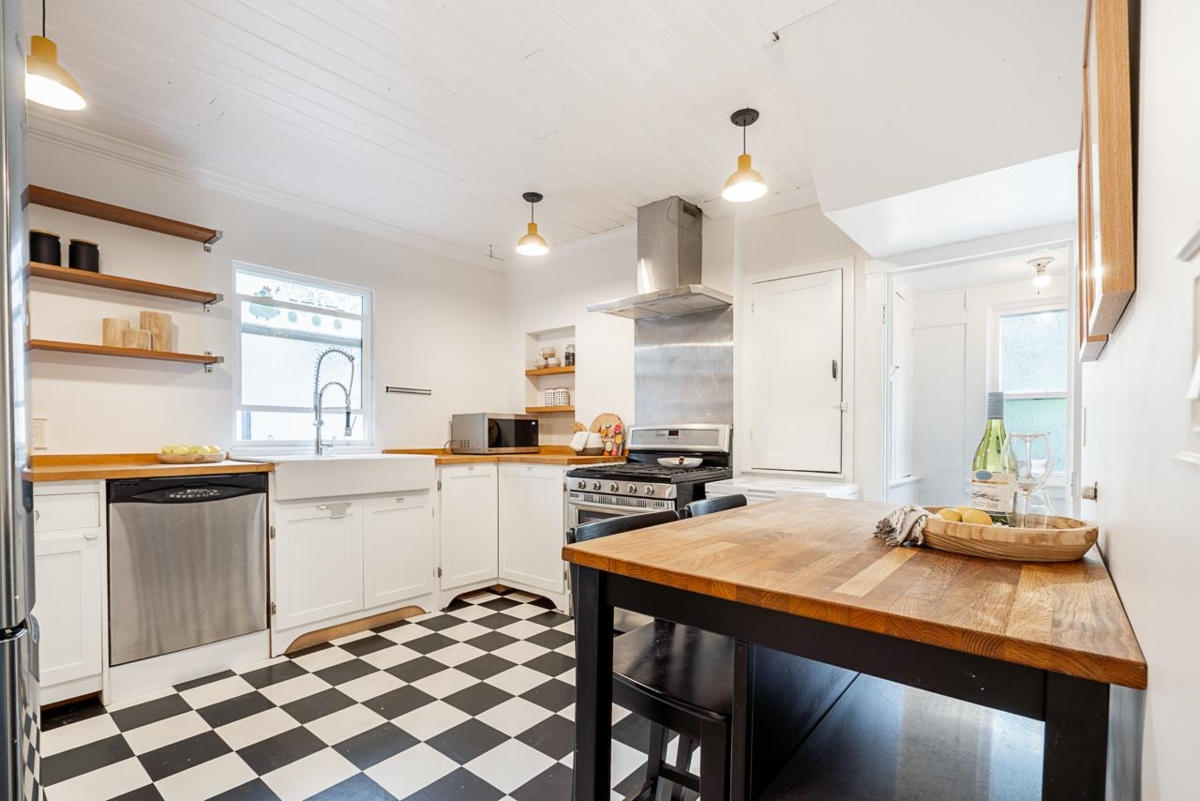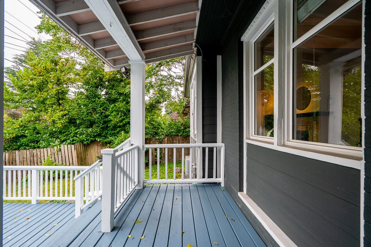 Charming 2-bedroom + den, 2-bath character home in New Westminster blending timeless appeal with modern updates. Covered front porch, rich wood floors, tall windows, and a cozy fireplace create warmth and appeal. Updated kitchen offers butcher-block counters, stainless-steel appliances, open shelving. Lower-level rec room with wet bar provides flexible space for media, hobbies, or office. Upstairs offers two bedrooms plus a den filled with natural light. Bathrooms include updated finishes and a classic clawfoot tub. Private yard, large deck, and covered porch seamlessly extend living outdoors. Convenient location close to SkyTrain, schools, shops, and parks, yet tucked away on a quiet residential street. A unique home full of charm and functionality.