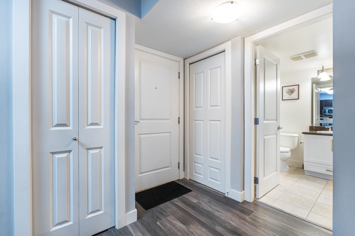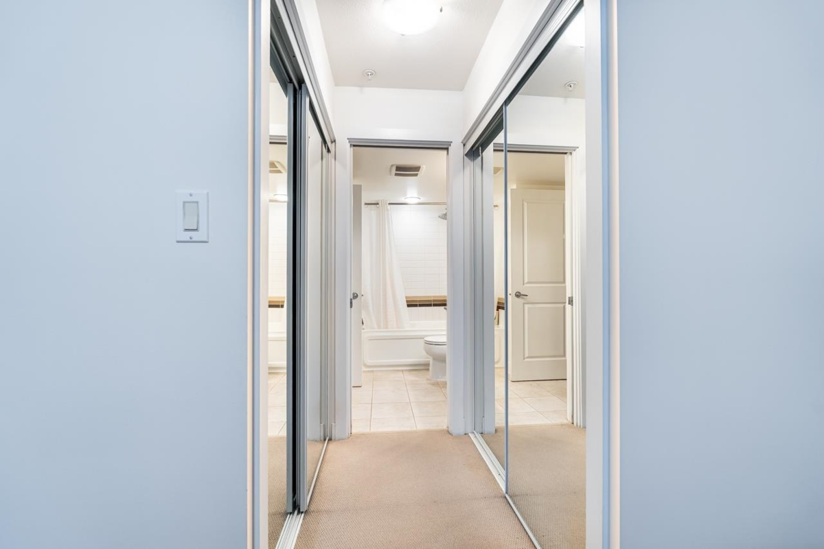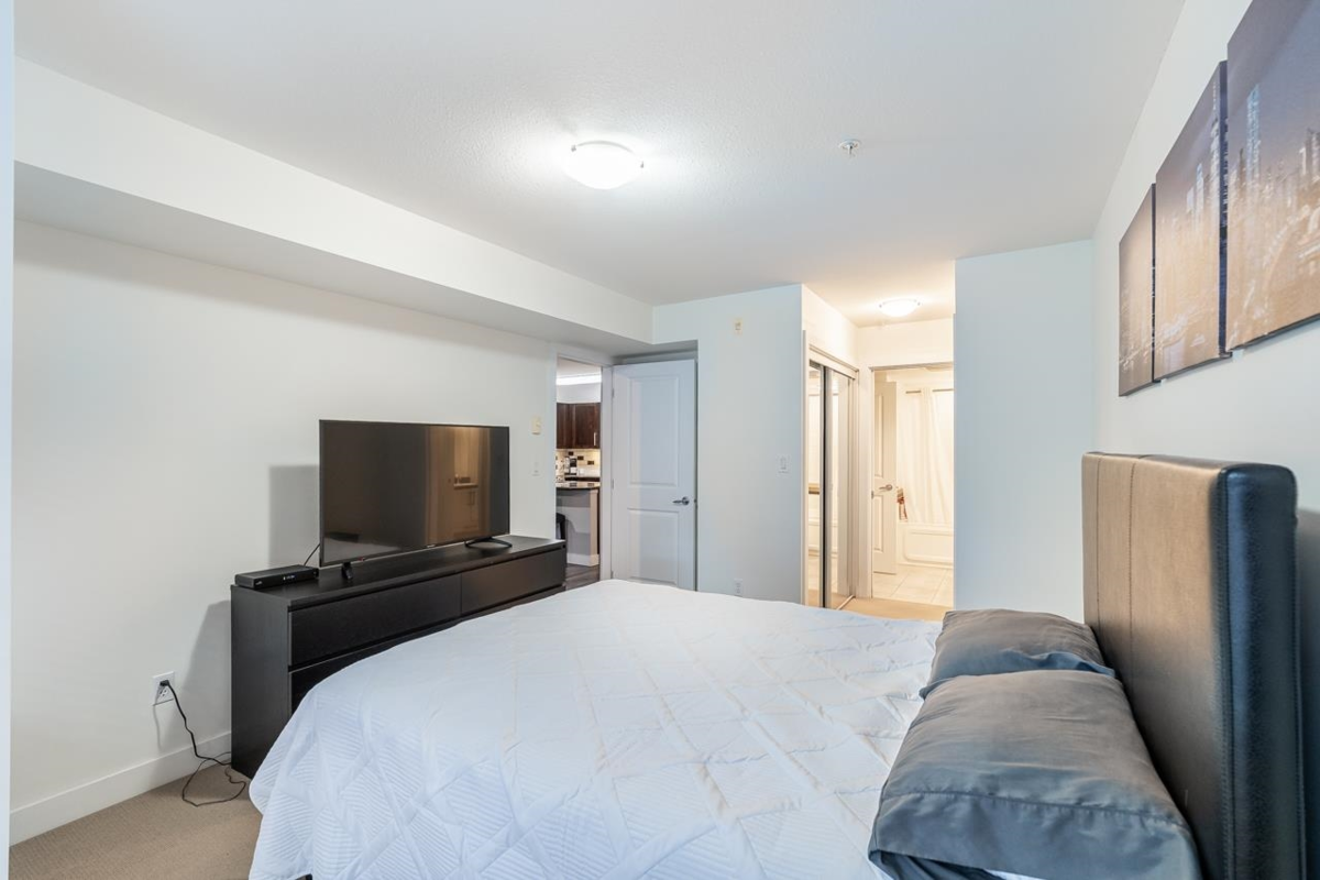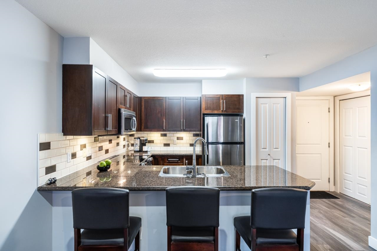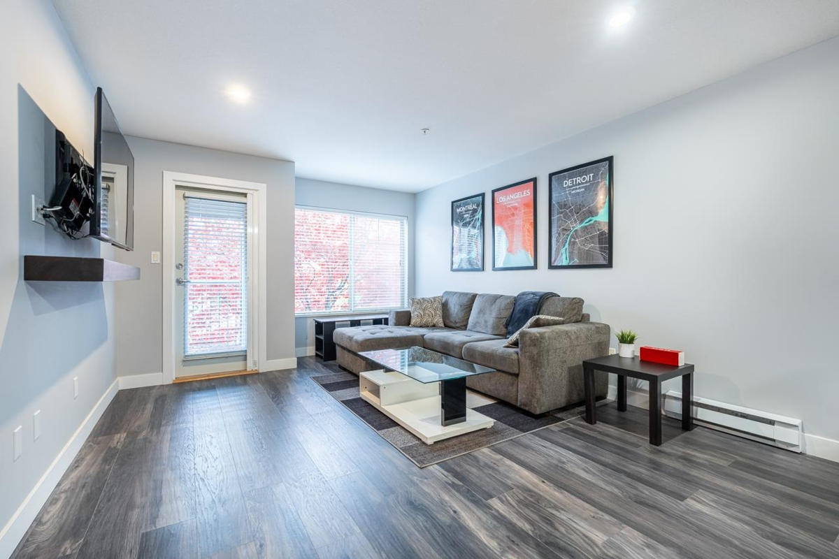 Welcome to BORDEAUX! Located at the end of a quiet cul-de-sac & just STEPS to Gates Park! This spacious one bdrm home offers an open concept layout w/a large kitchen featuring granite counters, S/S appls, built-in MW & breakfast bar open to dining & living rm. Access the covered patio off the living rm; perfect for pets, morning coffee & outdoor entertaining! Primary bdrm has double closets and cheater ensuite w/granite countertops & deluxe tub. Immaculate condition w/tasteful neutral decor throughout. Well-maintained, pet-friendly bldg (2 pets, no size restrictions). Includes 1 parking and locker. Prime location near the Coq River, Patina Brewery, West Coast Express, schools, rec centre, shops, restaurants & easy access to Hwy 1 & Lougheed Hwy.