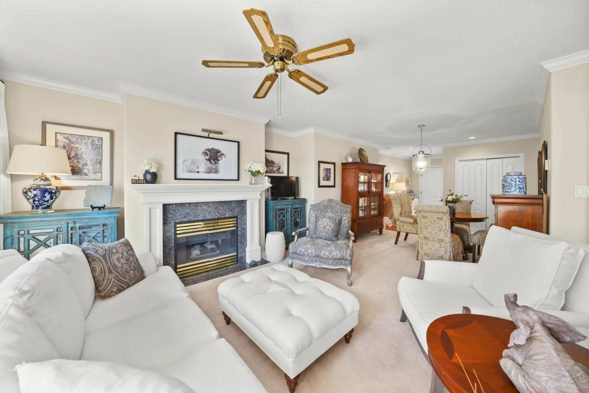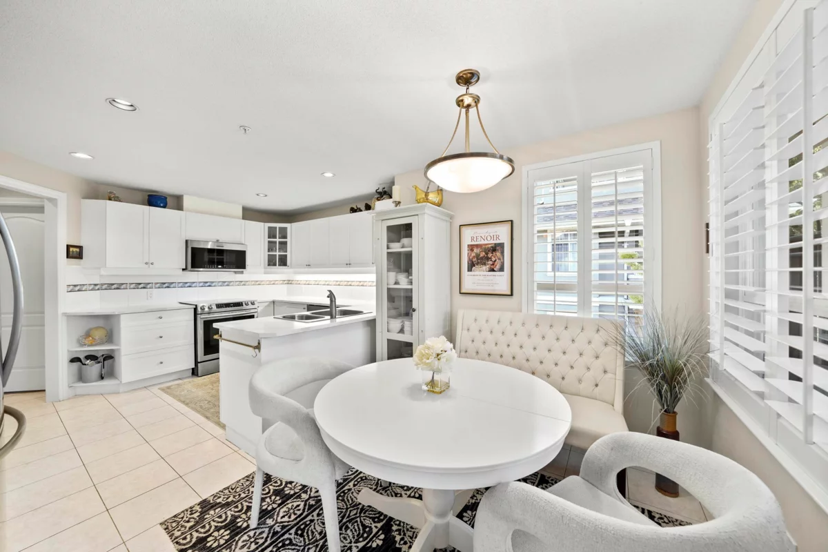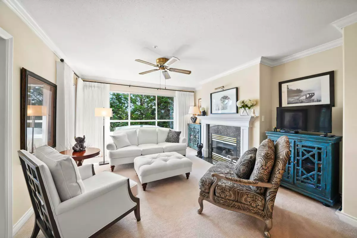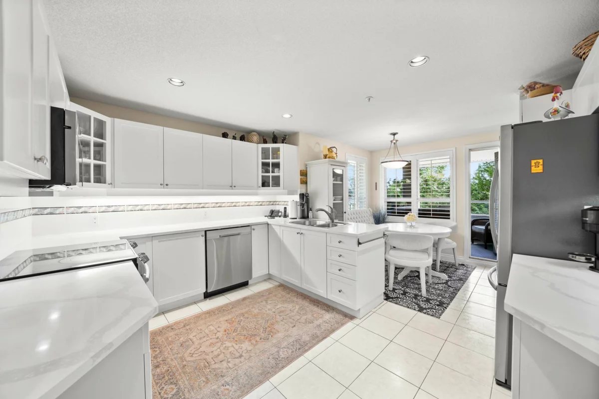 Great location, situated on a quiet street near the Tsawwassen town center. Just steps away from the library, shopping, restaurants and transit—no need for a car! This North East corner unit boasts over 1,300 square feet includes, spacious living room with a gas fireplace, adjacent dining room, updated kitchen with stainless steel appliances, cozy breakfast nook, two large bedrooms and two bathrooms. Enjoy the privacy of your covered patio, ideal for year-round use, with mature trees for added privacy. Additional features include radiant heating Hunter Douglas blinds, one parking space (#19) and a large storage locker (9x4). NO AGE RESTRICTION