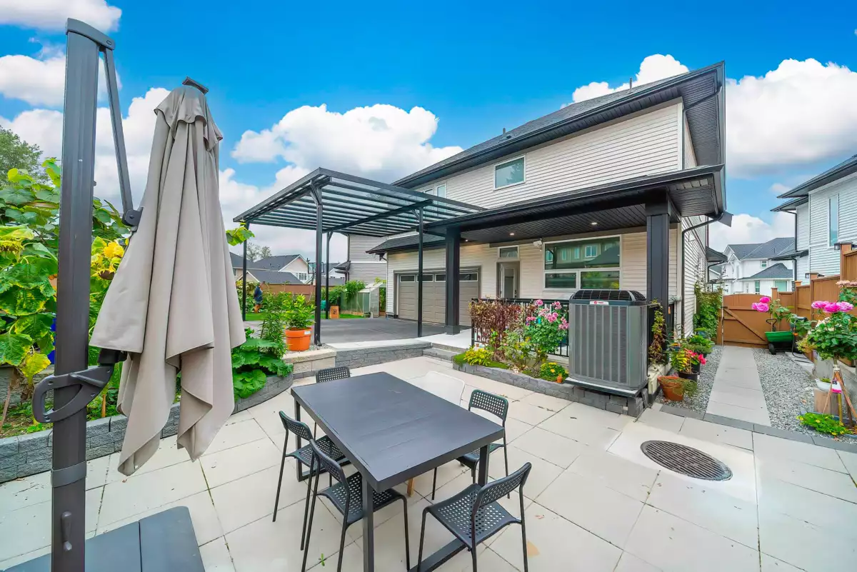 This stunning 5-bedroom, 4-bath home includes a 2-bedroom LEGAL suite,an ideal mortgage helper. Situated on a generous lot, the backyard is enhanced with a tinted glass cover, a beautifully designed artificial patio, and is surrounded by fruit trees and flowers, offering both comfort and charm. Perfect for year-round outdoor entertaining. Main level features a spacious dining and living, kitchen area, Upstairs you’ll find 3 bright bedrooms and 2 full baths. Enjoy the convenience of a wide, fully finished double garage and the comfort of central AC. Located in the heart of Willoughby, this home is steps to schools, parks, shopping, transit, and just minutes to Hwy1. (DGRE, PEM,R.E Secondary with IB program) within walking distance. OH: 12-2:30pm Nov 15