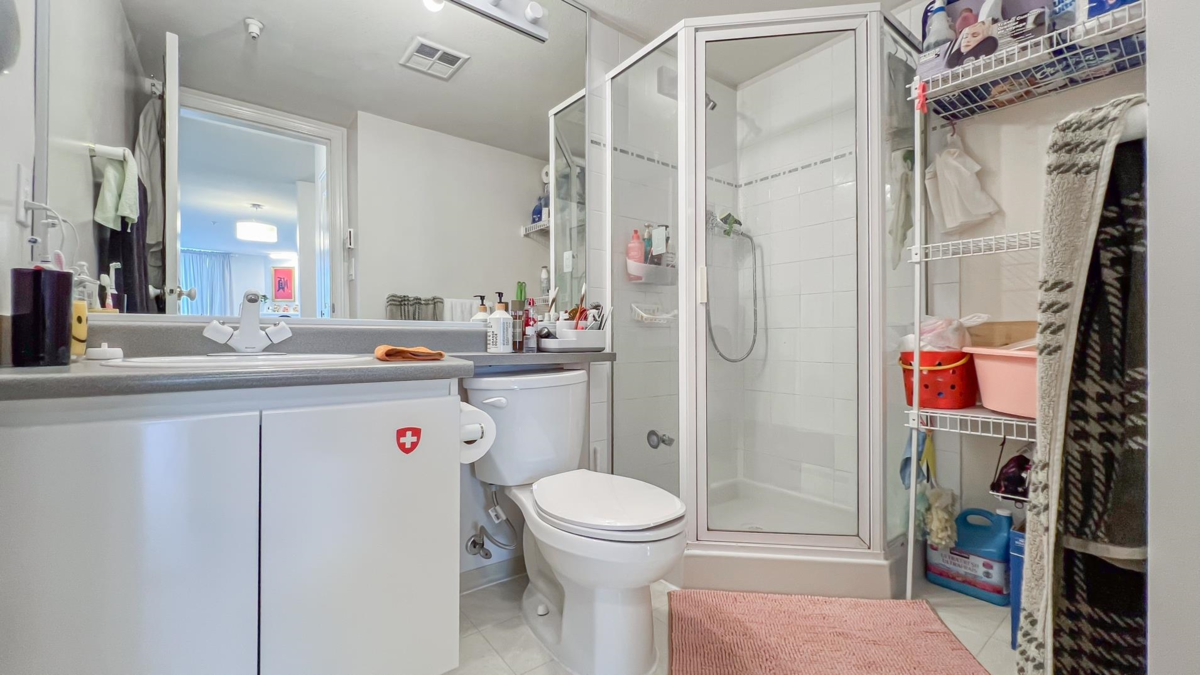 Enjoy a quiet riverside community, perfect for walking, running, or biking along the water. This spacious 2-bedroom, 2-bath home features a sun-soaked living room, a large balcony, and generous bedrooms. Includes 2 side-by-side parking stalls, with extra spots available for rent and Shared EV charging stations. Well-maintained building with beautiful gardens and great amenities: exercise room, lounge, woodwork workshop, and bike room. Steps from River District, offering shopping, restaurants, and banks. A perfect blend of nature and convenience—book your viewing today!