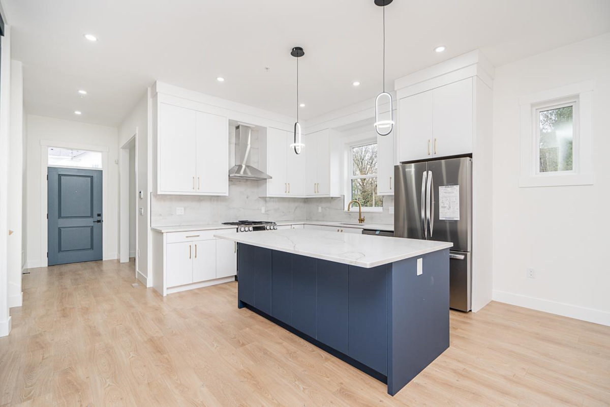 Introducing a stunning brand-new 1/2 Duplex by Harwest Homes! This exquisite 3-story residence is a perfect blend of luxury and functionality. Step into the grand kitchen, where sleek soft-close cabinetry meets a striking blue and white color scheme. The large island, paired with stainless steel appliances, makes this space a dream! With 3 bedrooms upstairs, the master bedroom is a true retreat, featuring a breathtaking 4-piece ensuite. Enjoy peace of mind with the 2/5/10 home warranty! Enjoy the convenience of having shops, eateries, & health and wellness centers, just moments away. The lower floor boasts a separate entry, adding to the versatility of this beautiful home. No maintenance or strata fees!