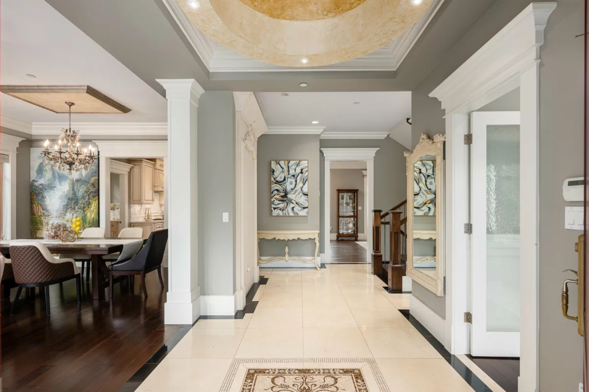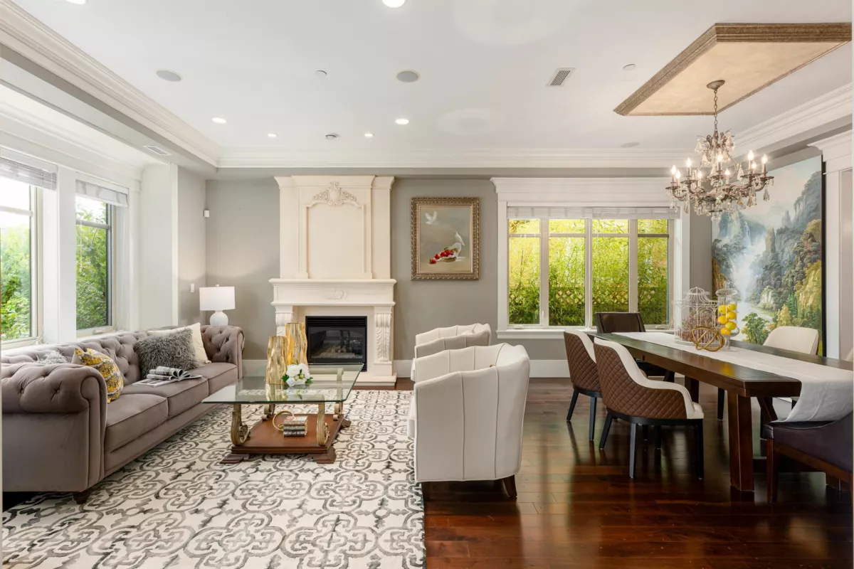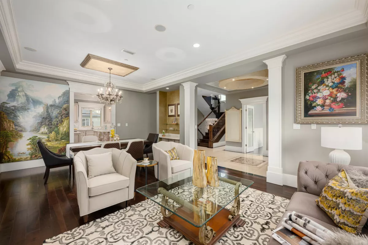 Kerrisdale Executive Home built by renowned Italian builder, Valentino. Mint. condition 15 yr old 4 level 4325sf residence w/ finest quality and design on a 50x135=6752sf south facing property. Mosaic stone grand entry, beautiful walnut hardwood & 10' ceiling on the Main. Open concept living/dining room w/Schonbek crystal chandelier & a designer fireplace & wall feature. Gourmet kitchen + a wok kitchen featuring high-end cabinetry, top of the line appliances. Large granite island opening onto the eating nook & the family rm. 4 bdrms all w/ensuites on 2nd flr. Top floor offers another bdrm w/ a full bath, cathedral ceiling & mountain view deck. Bsmt boasts a theatre, wine rm, rec rm & 2 extra bdrms. Walk to Kerrisdale amenities, short drive to Crofton, St. George's, York House, UBC.