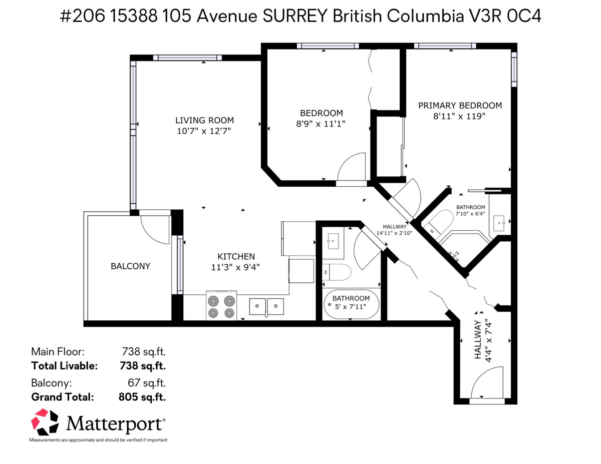 | Main Level | Living Room | 10'7 x 10'7 ft |