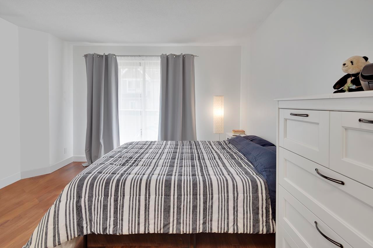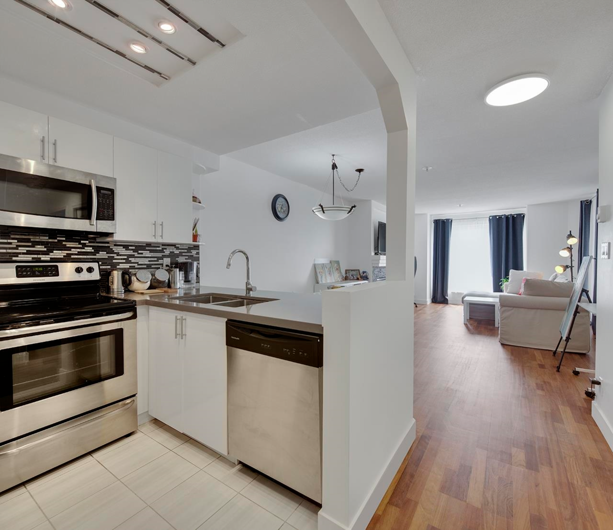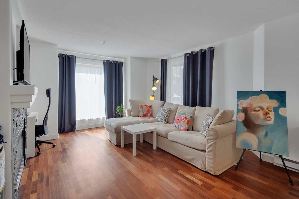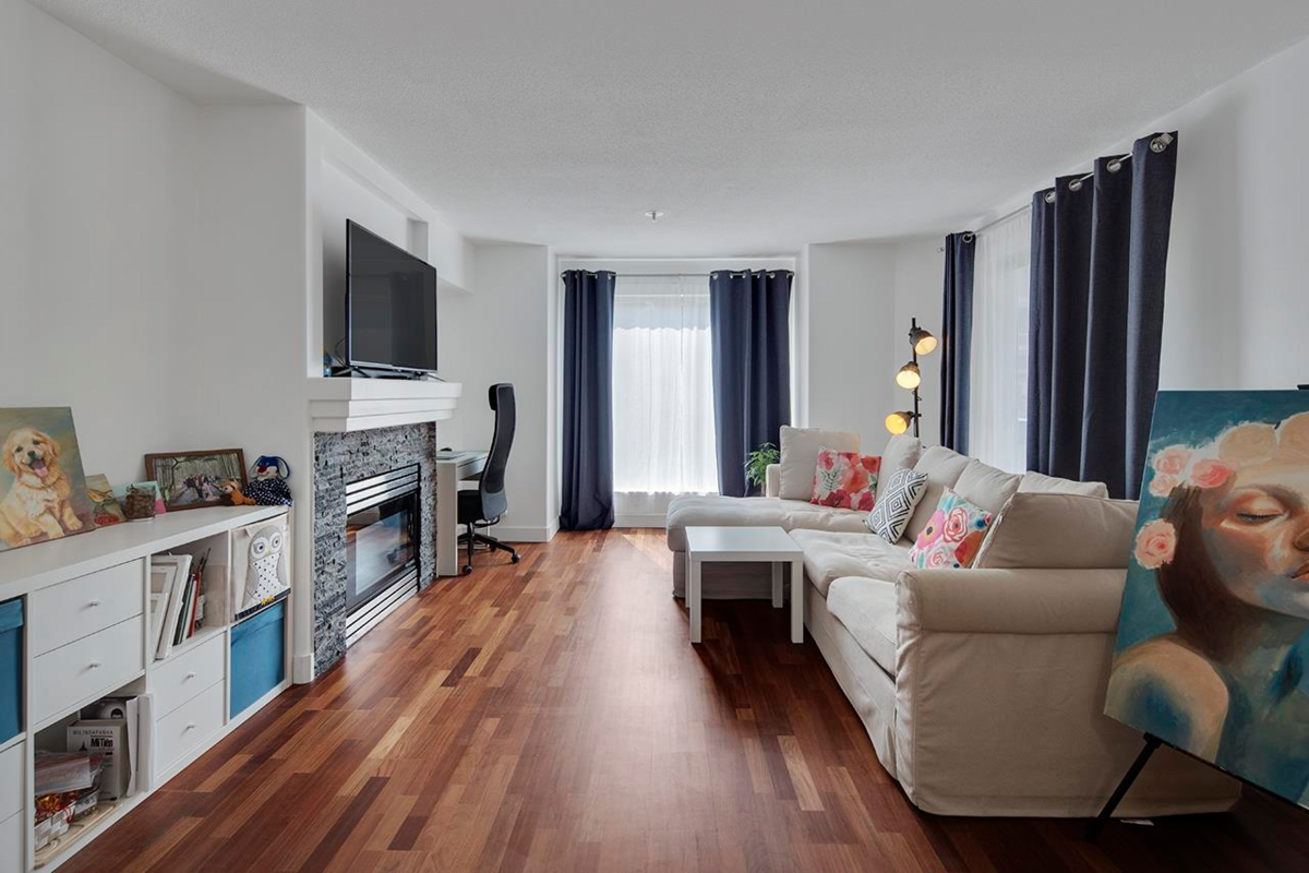 SPACIOUS 1 Bed + 1 Bath condo in Forestside, a proactive, rain-screened, pet-friendly building! Open-concept kitchen, quartz counters, high-gloss cabinets, S/S appliances, engineered hardwood. Spacious open concept floor plan to dining area and living room with gas fireplace. Cheater ensuite. 2025 RENO: freshly painted walls & refinished flooring, new fridge & washer. South-facing balcony with tons of sunlight. 1 parking & 1 locker + lots of street parking. Situated just around the corner from McLean Park and a short walk from Hyde Creek Recreation Center and Traboulay Trail. Additionally, it’s conveniently close to all levels of schools, shopping and transit, yet still on a quiet street.