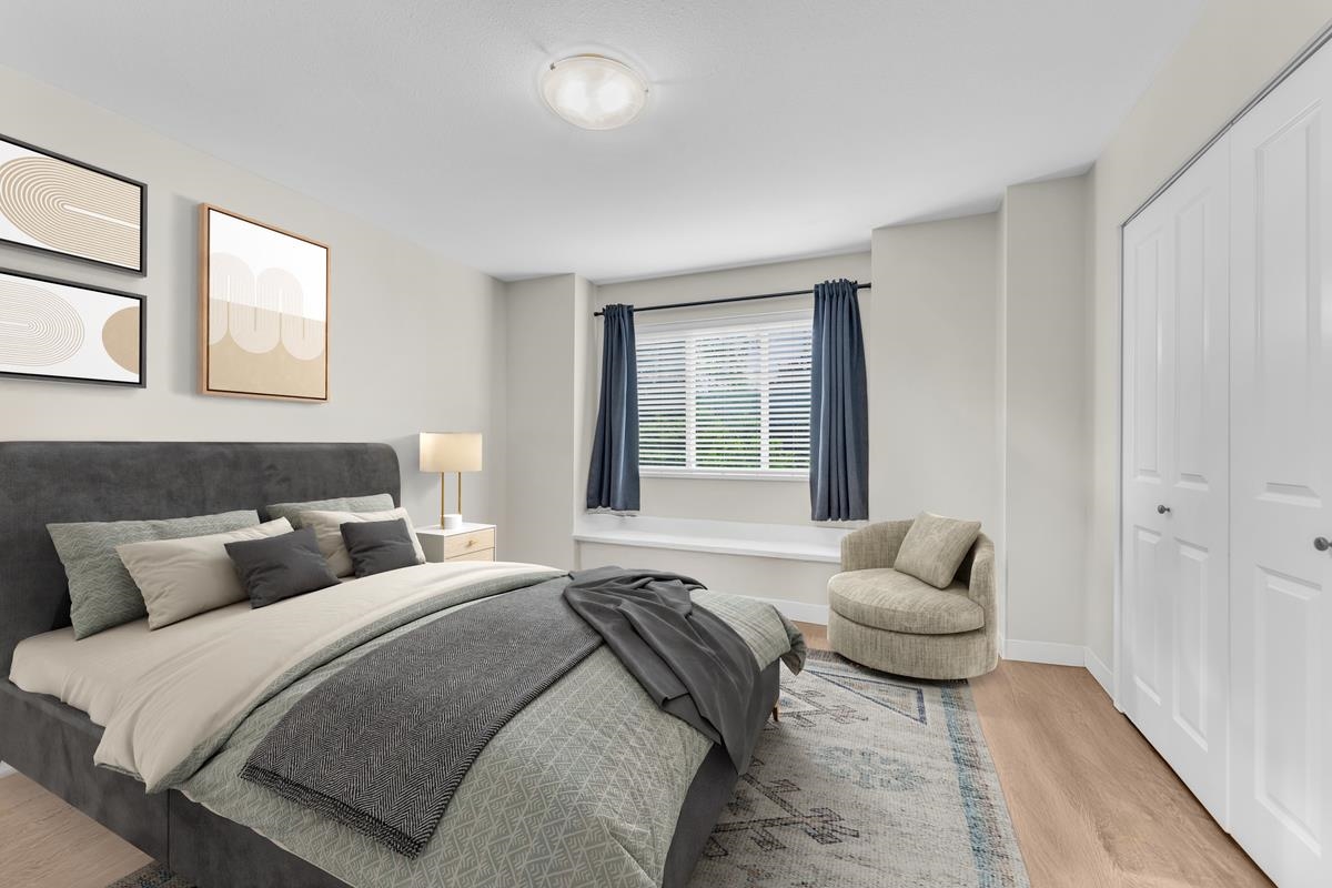 Discover exceptional value at Parkside Greene! A hidden gem nestled at the end of a cul-de-sac in Central Burnaby close to Boundary Rd and Canada Way. Tastefully renovated in 2021 with new laminate flooring throughout, kitchen countertops, resurfaced kitchen cabinets, and new shower doors. This home features soaring 9ft ceilings and an open layout that’s perfect for entertaining, with generously sized rooms that easily accommodate full-sized, house-worthy furniture—offering both comfort and style. Minutes to transit, Hwy, BCIT, Amazing Brentwood, Costco, Walmart, T&T Supermarket, shopping, restaurants and much more! School catchments: Cascade Heights Elementary, Moscrop Secondary. Comes with one parking and one storage locker. *Primary bed photo has been virtually decluttered and staged.