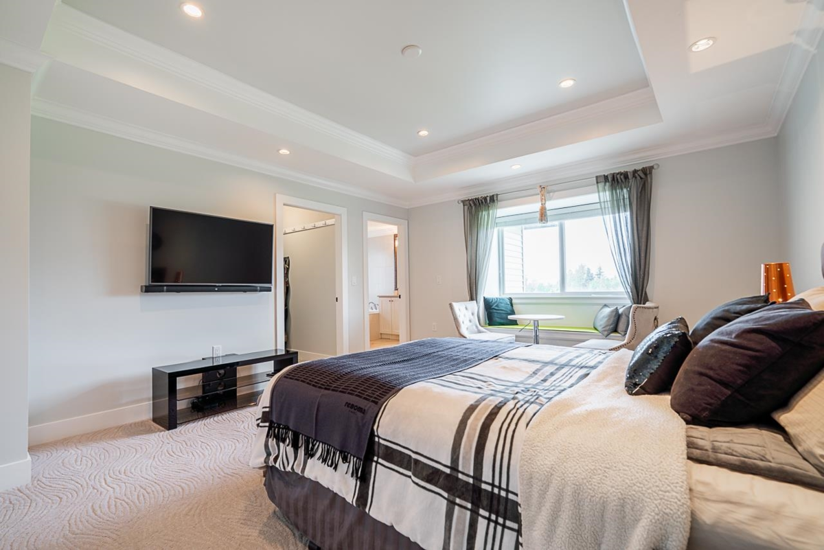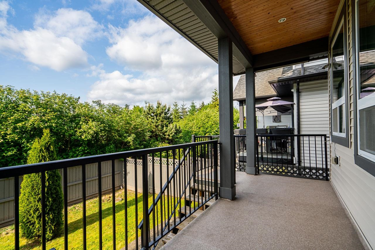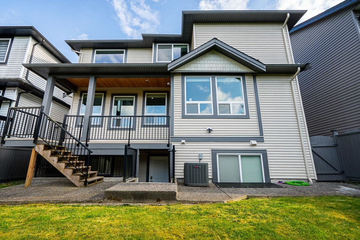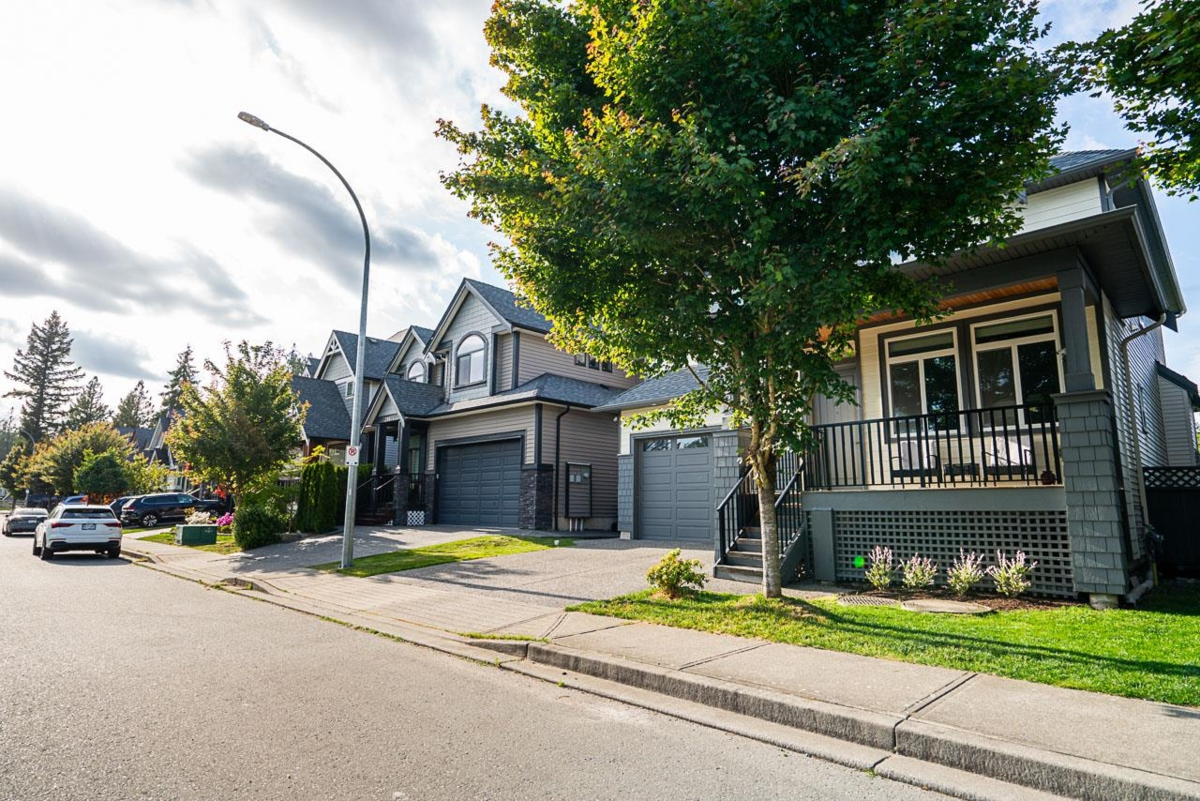 Stunning 2-storey home with walk-out basement in desirable North Yorkson! Backing onto green space with breathtaking mountain views, this home offers peace and convenience. Main floor features an open layout with soaring vaulted ceilings, a spacious kitchen with pantry, den, and covered deck overlooking the pond and greenbelt. Upstairs boasts a huge primary bedroom with panoramic views plus 3 large bedrooms. The bright walk-out basement includes a media room and a spacious 1-bed legal suite—perfect mortgage helper! Enjoy over-height garage, central A/C, and walking distance to Yorkson Creek Middle School and Carvolth Bus Exchange for easy commuting and great rental potential.