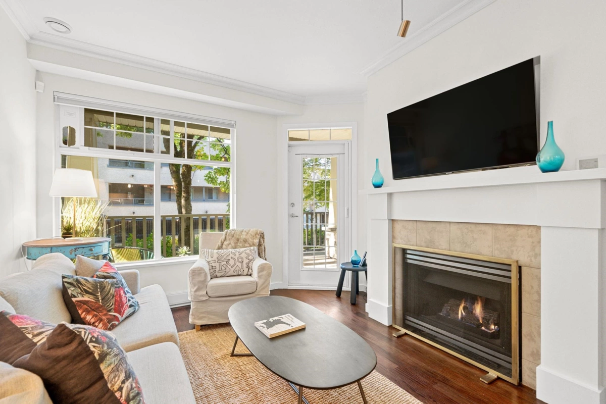 STYLISH WEST END RETREAT WITH PRIVATE PATIO Welcome to Andaluca on a peaceful, tree-lined street in Vancouver’s West End. This elegant one-bedroom plus den home combines charm, sophistication, and modern comfort. The bright, open-concept layout features overheight ceilings, a cozy gas fireplace, and a thoughtfully designed kitchen with ample cabinetry and stainless steel appliances. The highlight is the oversized private patio—partially covered and surrounded by greenery—perfect for entertaining or quiet reflection. Additional perks include in-suite laundry and secure parking. Pet- and rental-friendly, steps from English Bay, the Seawall, Stanley Park, and boutique shopping and dining along Davie, Denman, and Robson Streets.
