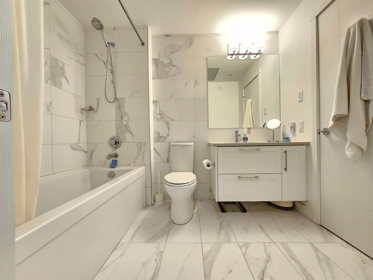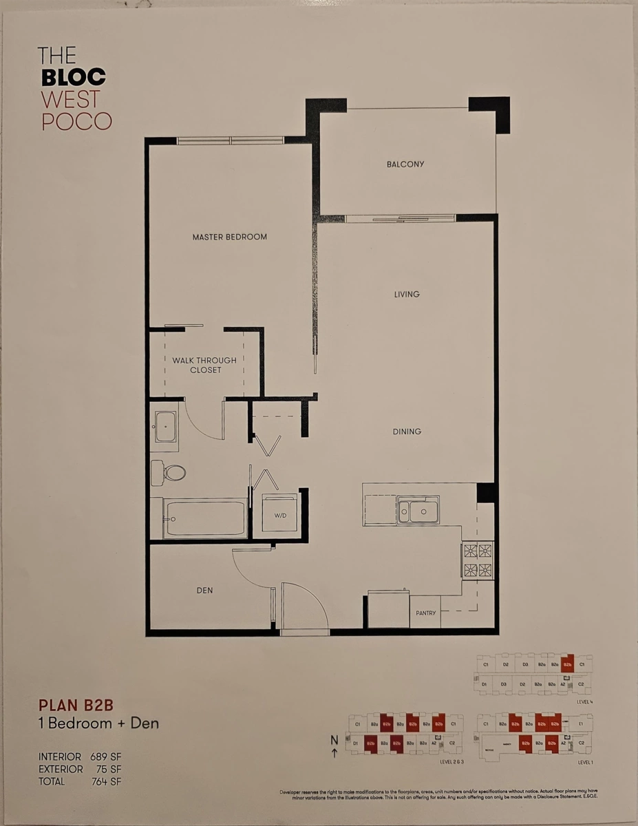 Welcome to THE BLOC! This spacious 1 bed + den unit features 9' ceilings, quartz counters, stainless steel appliances, laminate floors, shaker cabinets, and an inviting open layout. The unit features a versatile den, perfect for a home office or playroom. Low maintenance fee, amenities include a pet wash station, secured bike lockers, and a party room. Conveniently located in West Port Coquitlam, just 5 mins to Coquitlam Centre and Coquitlam Central Station for access to the Evergreen Line and West Coast Express. Steps to the PoCo Trail, Coquitlam River, shops, restaurants, and transit! 2 parking stalls included!