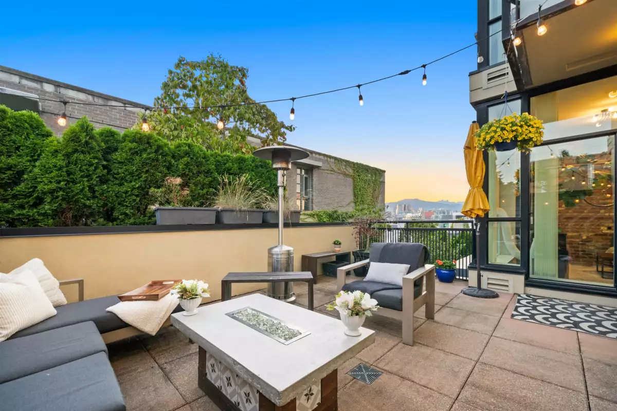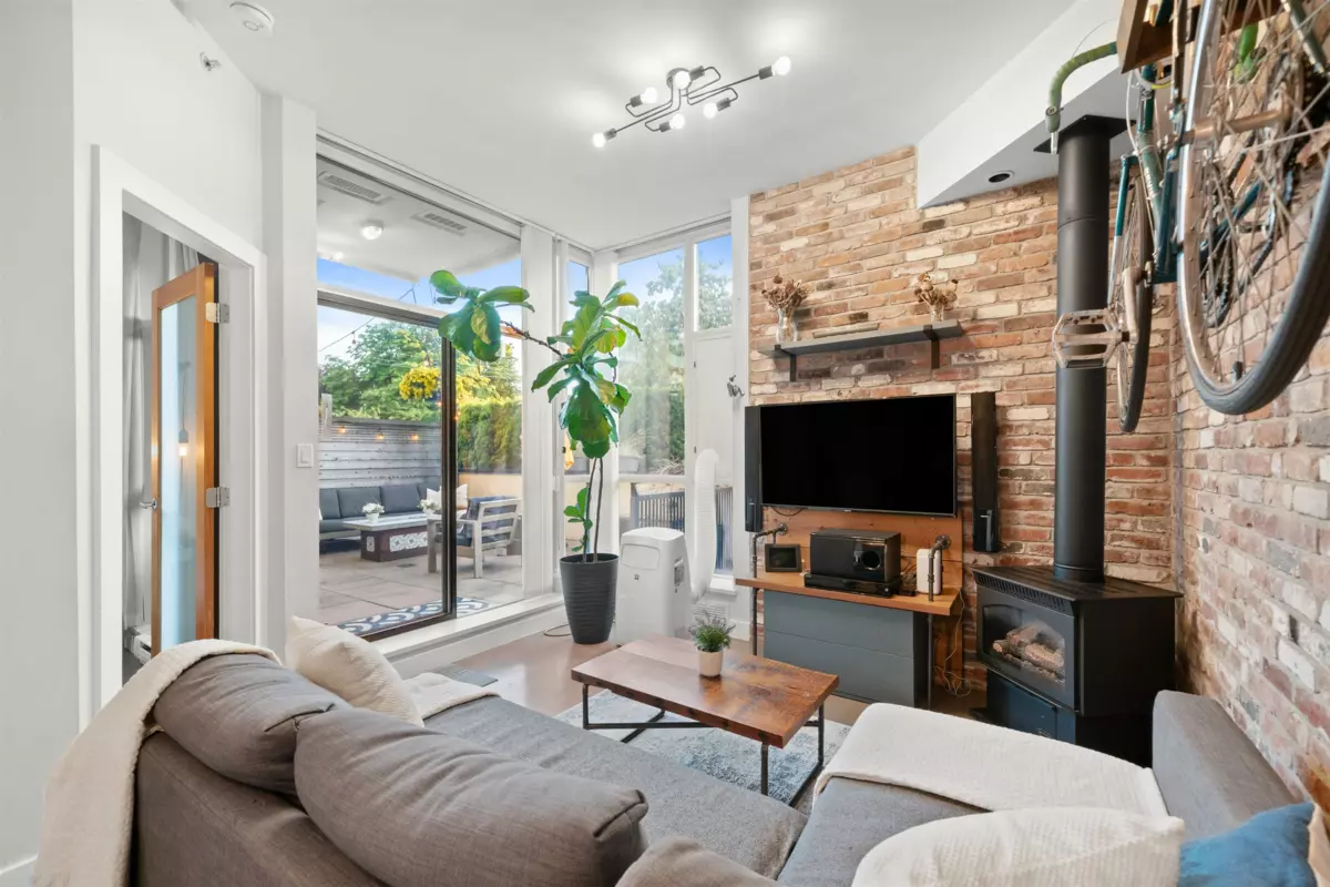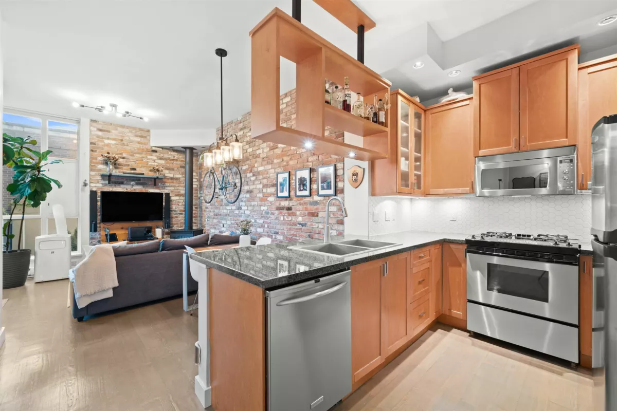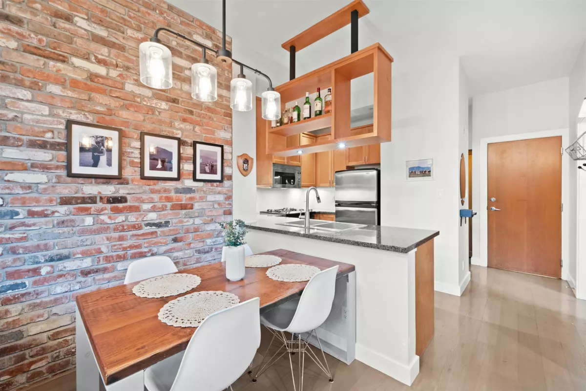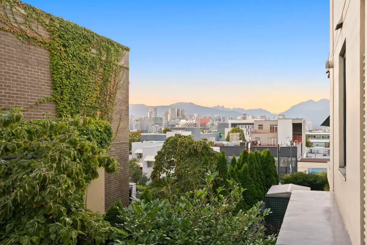 The Elements is a boutique concrete building in the heart of Mount Pleasant. This bright 1 bedroom and den home features high ceilings, hardwood floors, exposed brick, and a rare 300 square foot private patio with stunning city and mountain views. The layout is efficient with a spacious den, in-suite laundry, generous in-unit storage, and one secured parking stall. Just steps from cafes, transit, breweries, and Olympic Village. A perfect blend of character, solid construction, and lifestyle location.