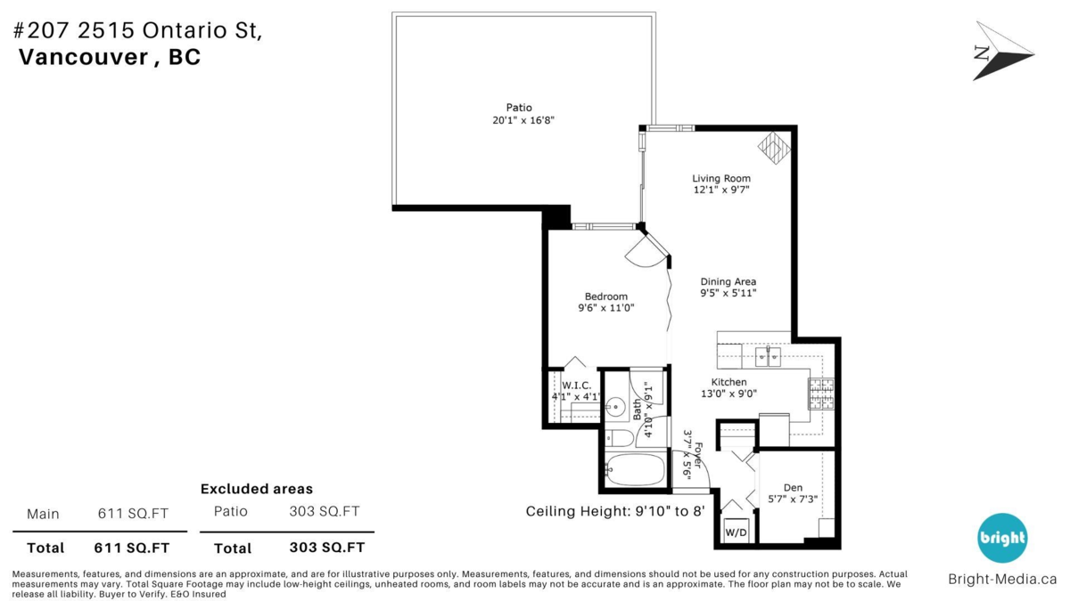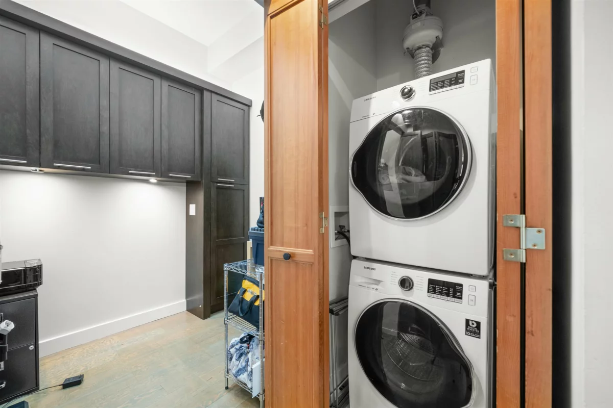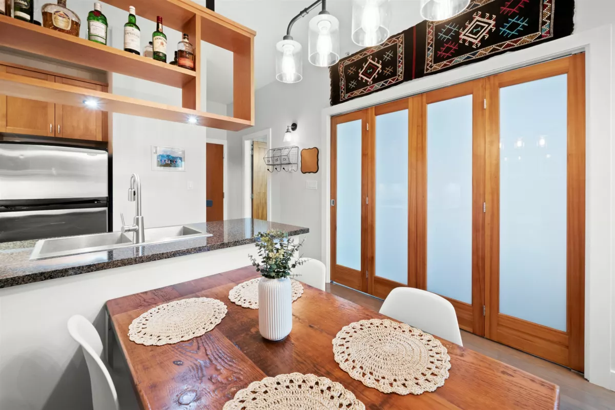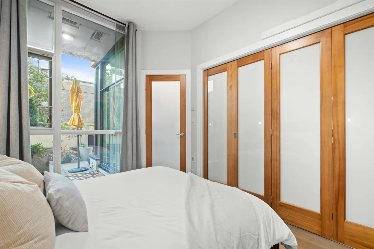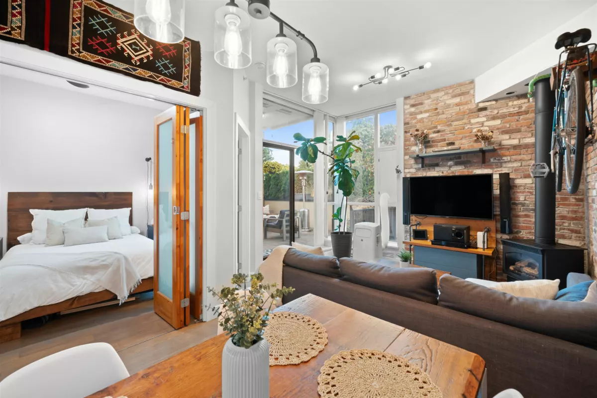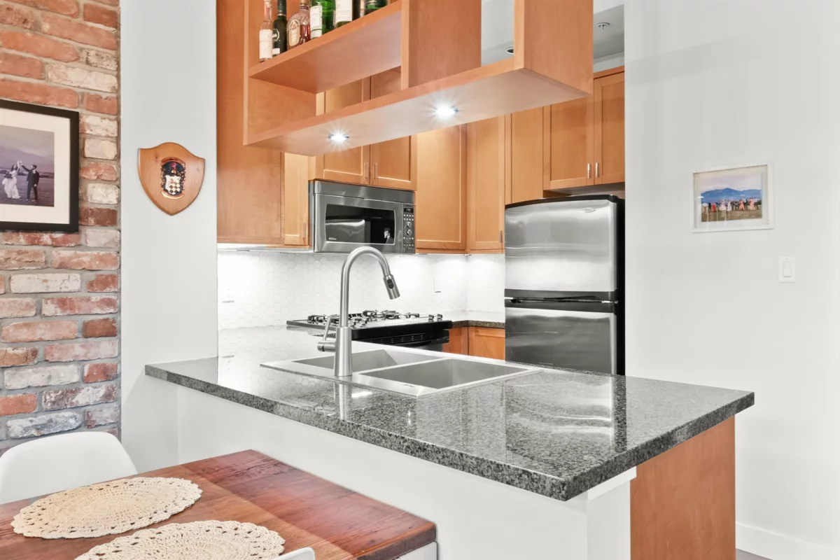 The Elements is a boutique concrete building in the heart of Mount Pleasant. This bright 1 bedroom and den home features high ceilings, hardwood floors, exposed brick, and a rare 300 square foot private patio with stunning city and mountain views. The layout is efficient with a spacious den, in-suite laundry, generous in-unit storage, and one secured parking stall. Just steps from cafes, transit, breweries, and Olympic Village. A perfect blend of character, solid construction, and lifestyle location.