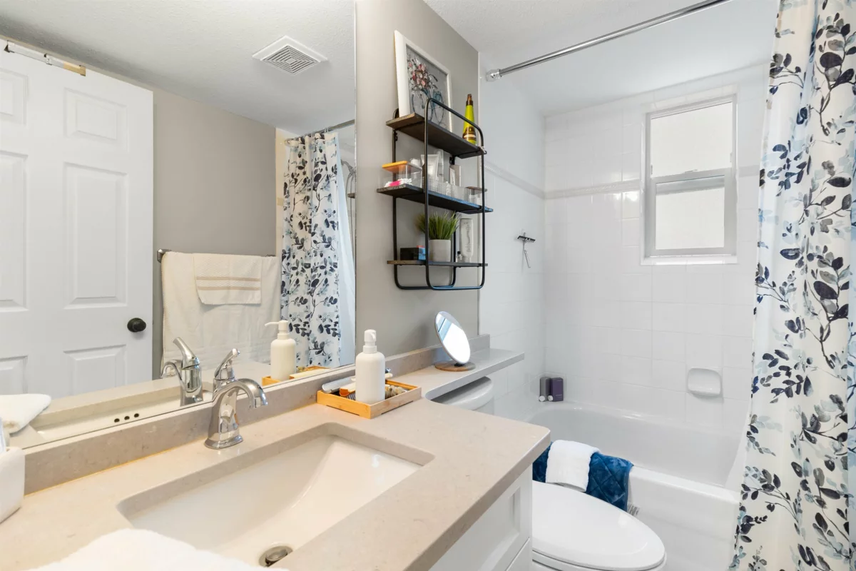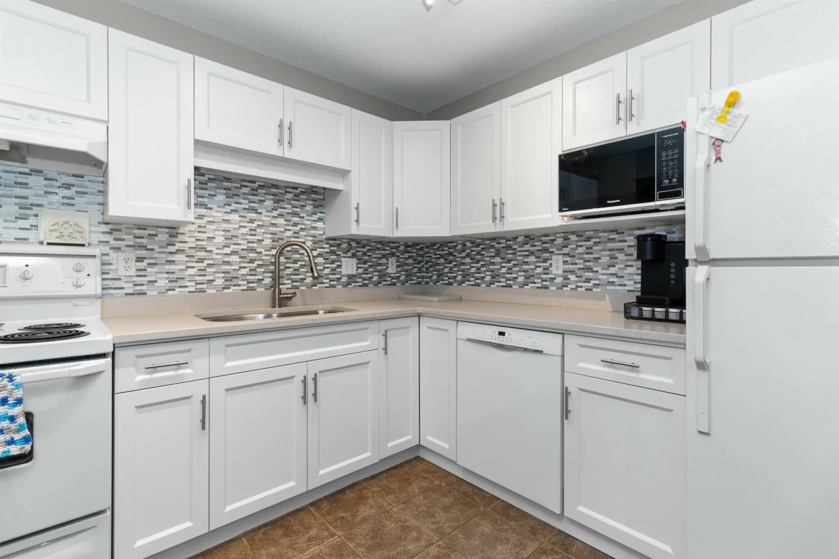 Welcome to this bright and spacious 2-bedroom, 2-bathroom condo in the heart of Abbotsford! Boasting 1,040 sqft of comfortable living space, this well-maintained unit offers a large open-concept living and dining area with plenty of natural light. Featuring an updated kitchen with quartz counters, ample storage, and a functional layout that flows seamlessly into the living space. Both bedrooms are generously sized, with the primary suite offering a private ensuite bathroom. The second bedroom is ideal for guests or a as a home office. This well maintained building offers an indoor pool, hot tub, gym, large games room with kitchen, pool table, shuffle board, tv, seating area, 2 guest suites, storage locker, open air courtyard, and a great community. Book your showing today!