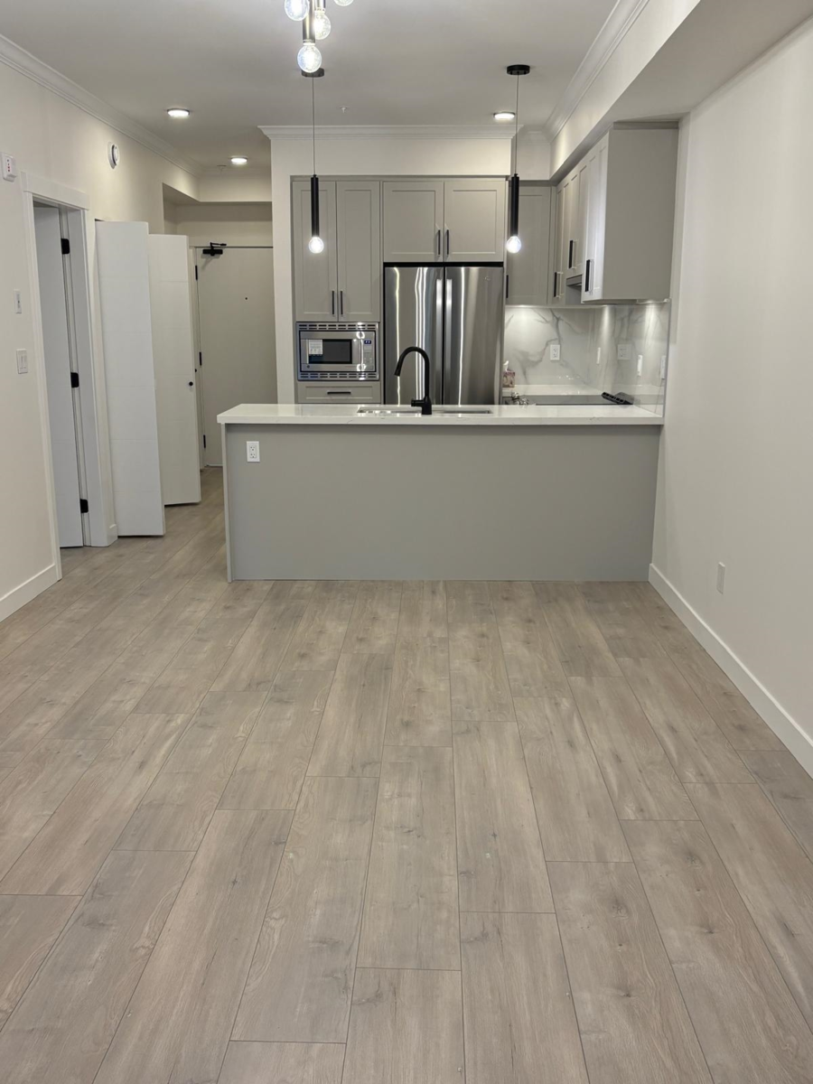 Brand new 2 bedroom, 2 bath unit in Inspire development in Central Maple Ridge. Quartz countertops, undermount sinks, stainless steel appliances. The unit includes 2 parking spaces and a bike/storage locker. The complex includes an amenities room, full service gym/yoga room, and a generous outdoor common area. Great location in the building.