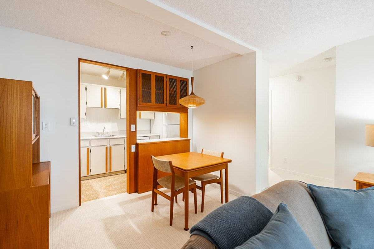 This tastefully updated S/F 1bdr & flex is where modern updates & vintage style come together to create a move in ready home. Offering 680s/f of living space + an additional 82s/f in the solarium. The generous-sized bedroom has a walk-through closet to a semi-ensuite bath & there’s plenty of insuite storage. Recent updates include new carpets, baseboards, solid wood doors & fresh paint. Building amenities incl a central courtyard, rooftop deck, same-floor laundry (in suite with strata approval) & more! Vanier Court is a well-maintained & reputable building, it has an onsite caretaker, a strata-owned suite for financial stability, a new roof and elevator & upgraded common areas. 3 pets are welcome (dogs & cats) & the M/F includes heat h/w & electricity. Welcome to your Home Sweet Home!