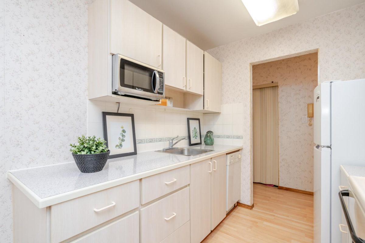 Affordable, convenient living in prime location in White Rock. Comfortable 1 bedroom condo w updates in bathroom in respected and updated co-op building North Bluff Village. Condo is on the quiet side of building, with a peaceful south-facing balcony overlooking trees. Have lots of stuff? Enjoy rare large in-unit storage area plus locker downstairs. Underground parking space. Clean, updated shared laundry room. Building has multi-purpose amenity room with pool table, table tennis, shuffleboard, gym equipment and games. Keep your monthly costs manageable: $261.07 includes heat, hot water & water. 55+ building. No rentals. Pet friendly: no dogs but 1 cat allowed. Building is run like a strata but you buy shares in a cooperative. Move-in ready.