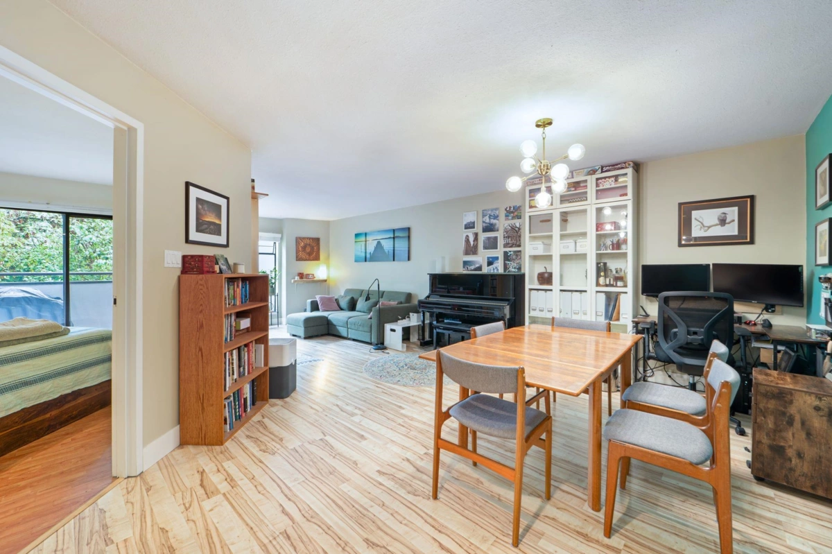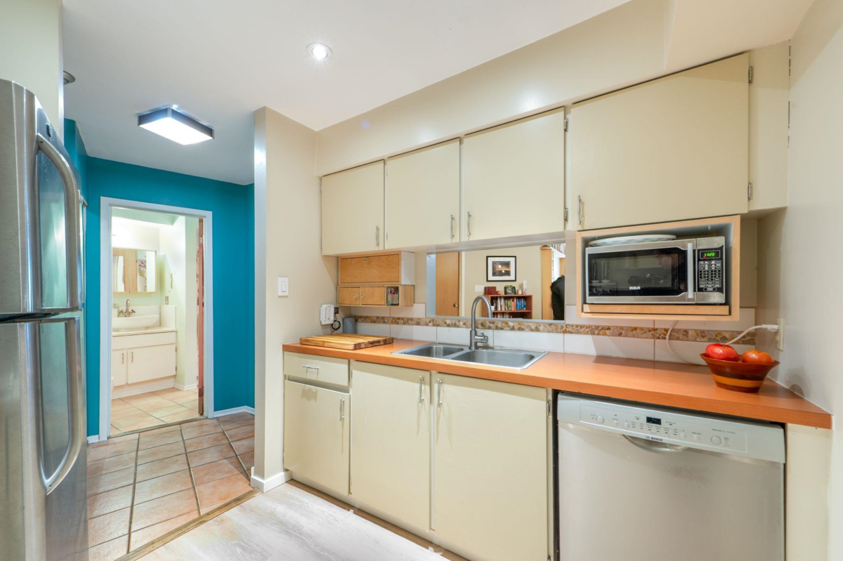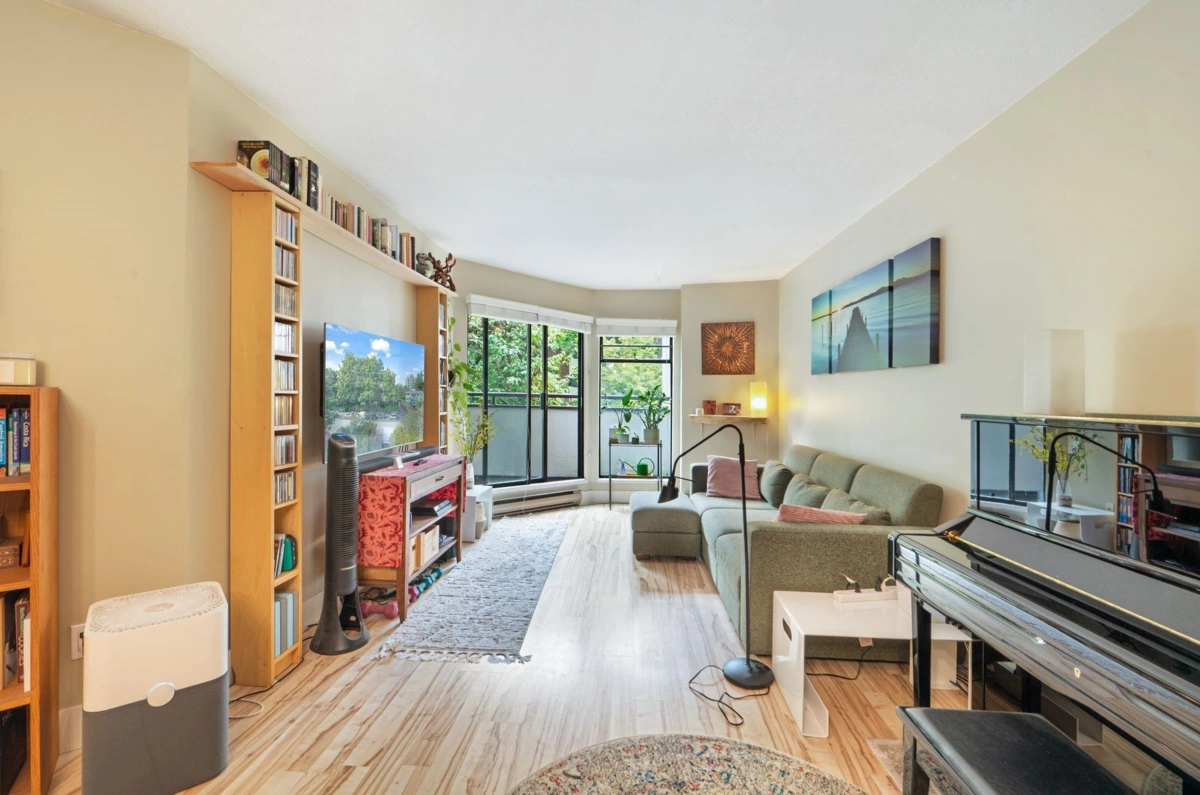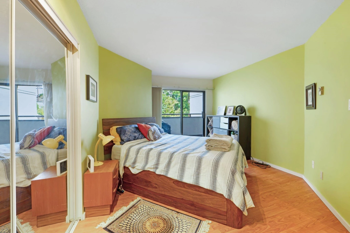Welcome to this large 1 bedroom + 1 bath home strategically located above the building's lobby (no downstairs neighbors!) in the heart of Mount Pleasant. The building is surrounded by trees which offers great privacy yet the condo faces west so it gets plenty of light year round. Updated flooring and a functional kitchen + large walk in pantry. A huge bedroom with ample closet space and secondary access to the your private balcony, perfect for relaxing. 1 parking + 1 big storage locker + secured bike room too. The building also offers a shared rooftop patio perfect for summer gatherings. Steps to Main Street’s trendy shops, restaurants, cafes, breweries, and transit. A pet-friendly building in a vibrant, highly walkable neighborhood. The location can't be beat!