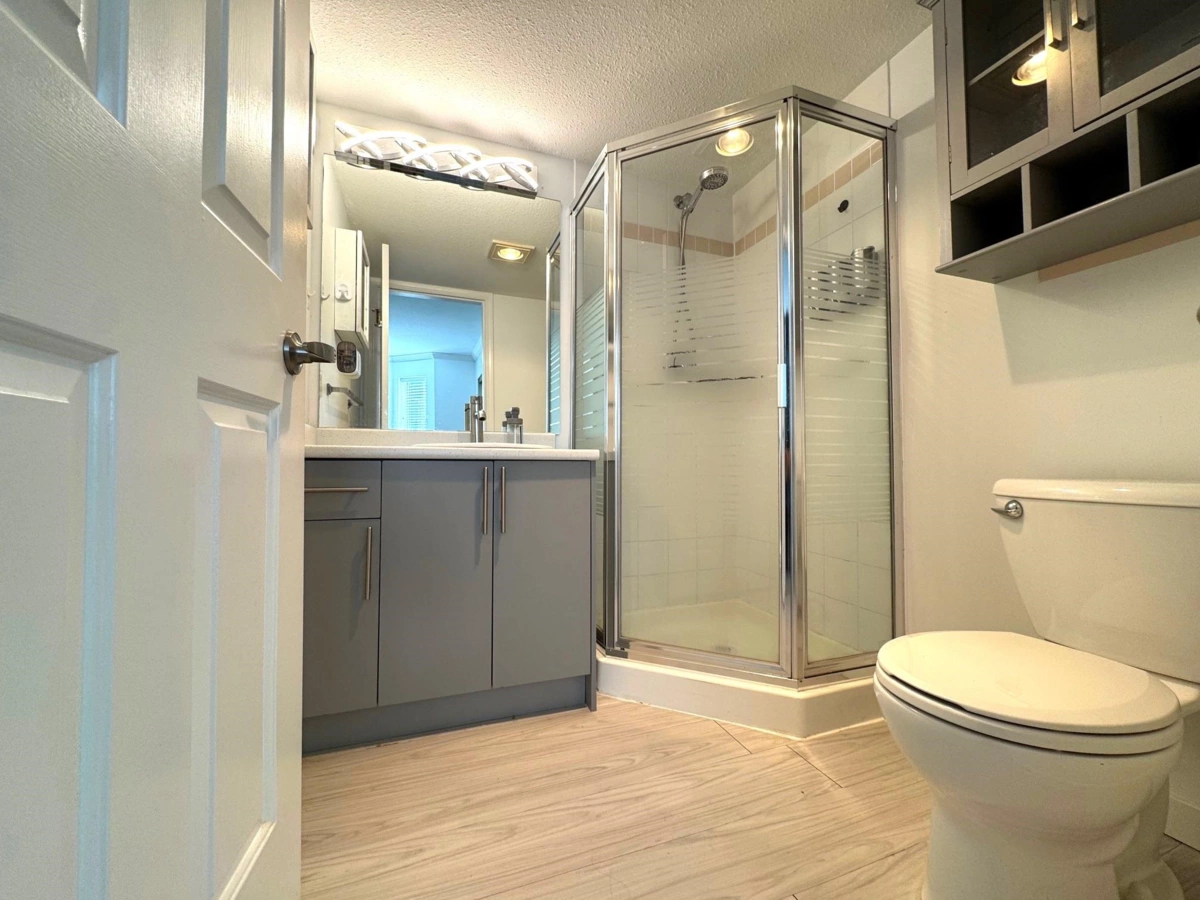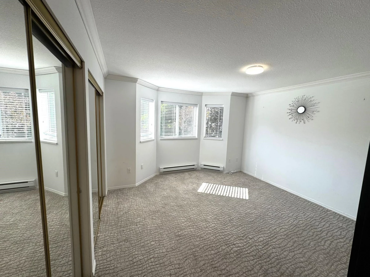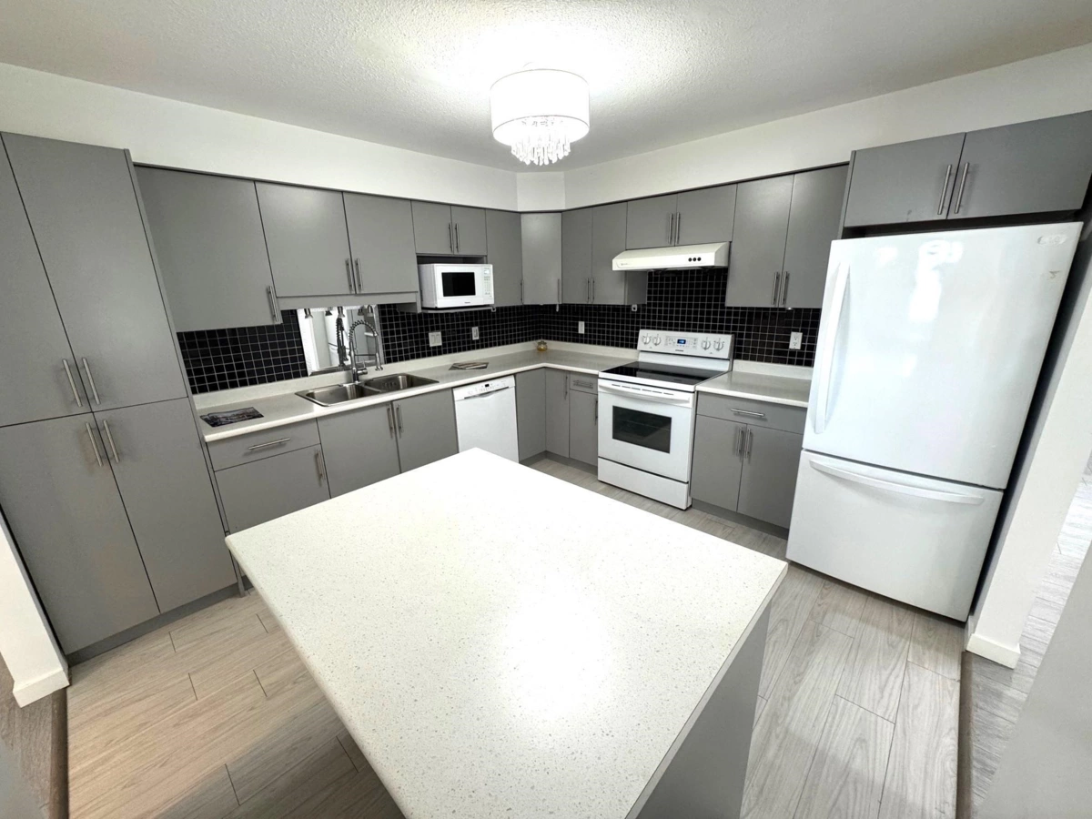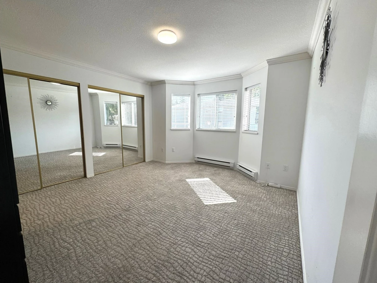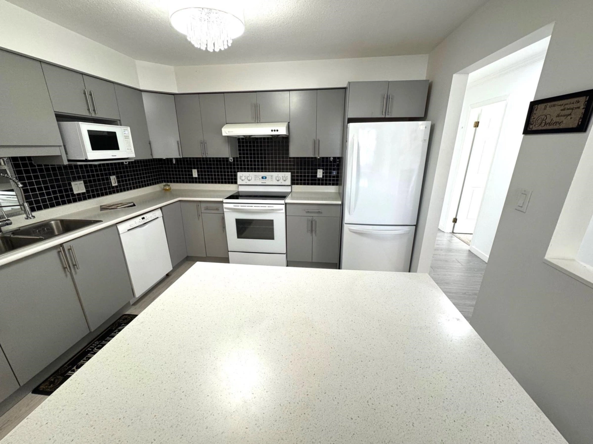 Move in ready fully renovated corner unit at Tiffany Park! This stunning 1217 sq. ft. 2 bed, 2 bath home has a great layout with generous sized rooms and tons of storage space. Tastefully updated featuring a new gourmet kitchen with island, new appliances, new flooring, new light fixtures, updated bathrooms. Being a corner unit you get lots of additional windows which provide great natural light . Situated on the quiet side of the building. This 55+ adult oriented complex is centrally located, walking distance to shopping, restaurants, parks, recreation & a short walk to Mill Lake. 1 underground parking stall included, pets are not allowed. Bonus: Heat, hot water, gas & electricity are included in the Strata fee!