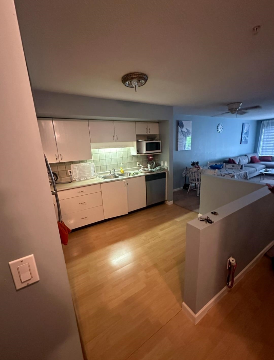 This bright and spacious 1-bedroom + den condo features an open-concept kitchen and living room seamlessly connected to a versatile den. The large bedroom offers plenty of space and comfort. Recent updates include a new building envelope with windows, siding, and decks. This unit comes with 1 parking stall and a storage locker. Located just steps from the new skytrain line, Green Timbers Nature Park, schools, and all amenities, this is a great starter home in a great area!