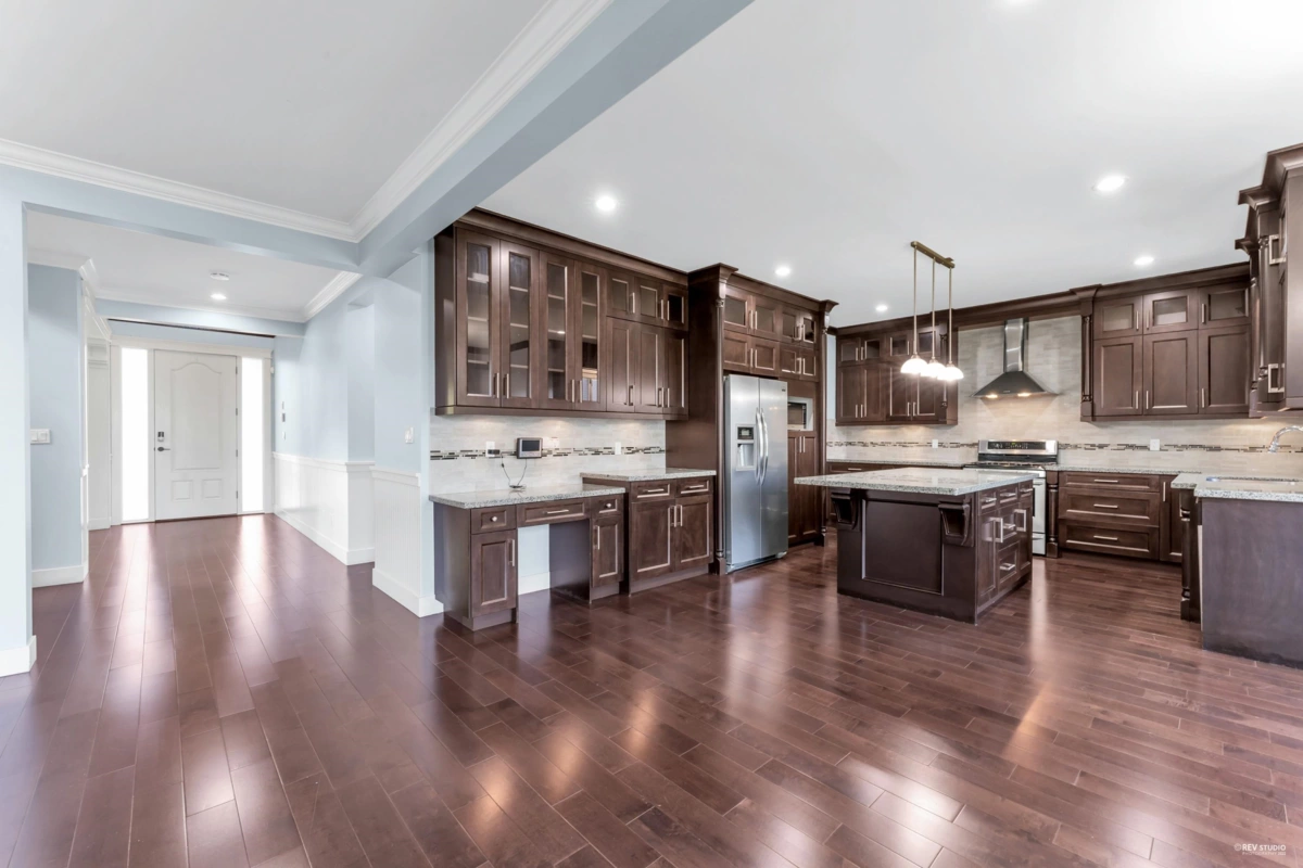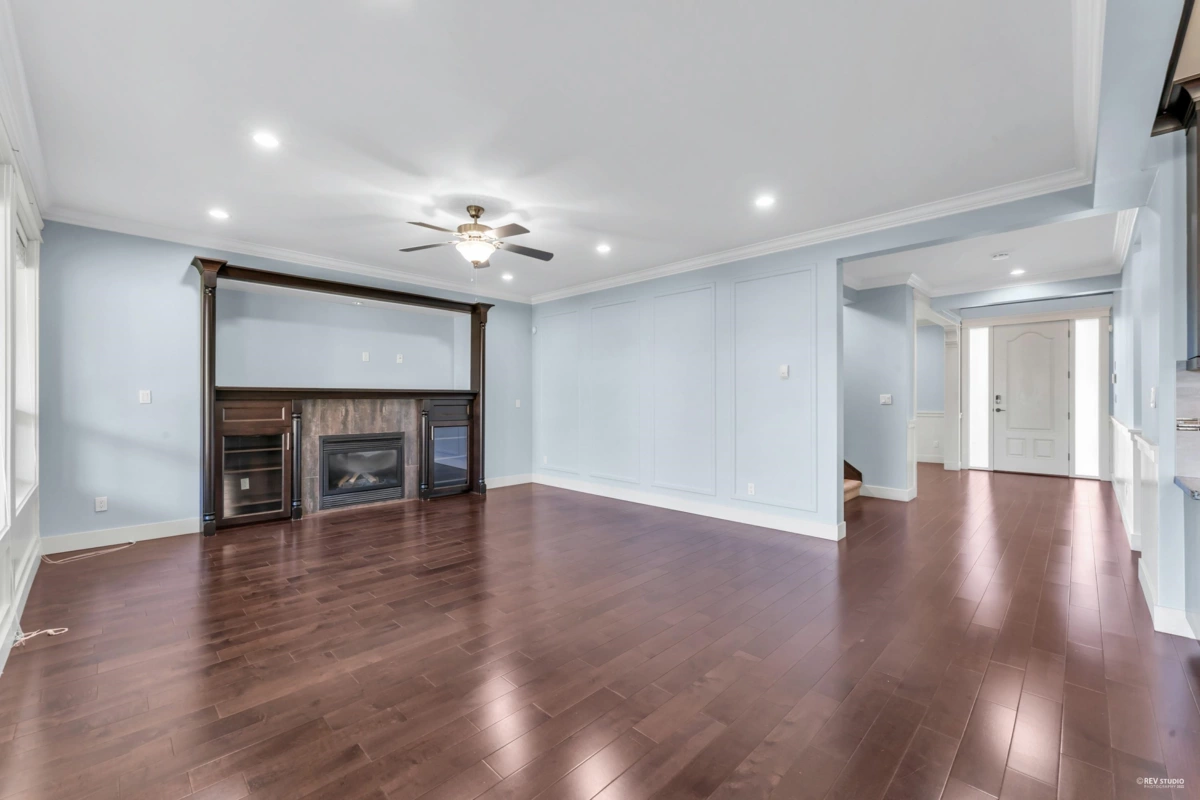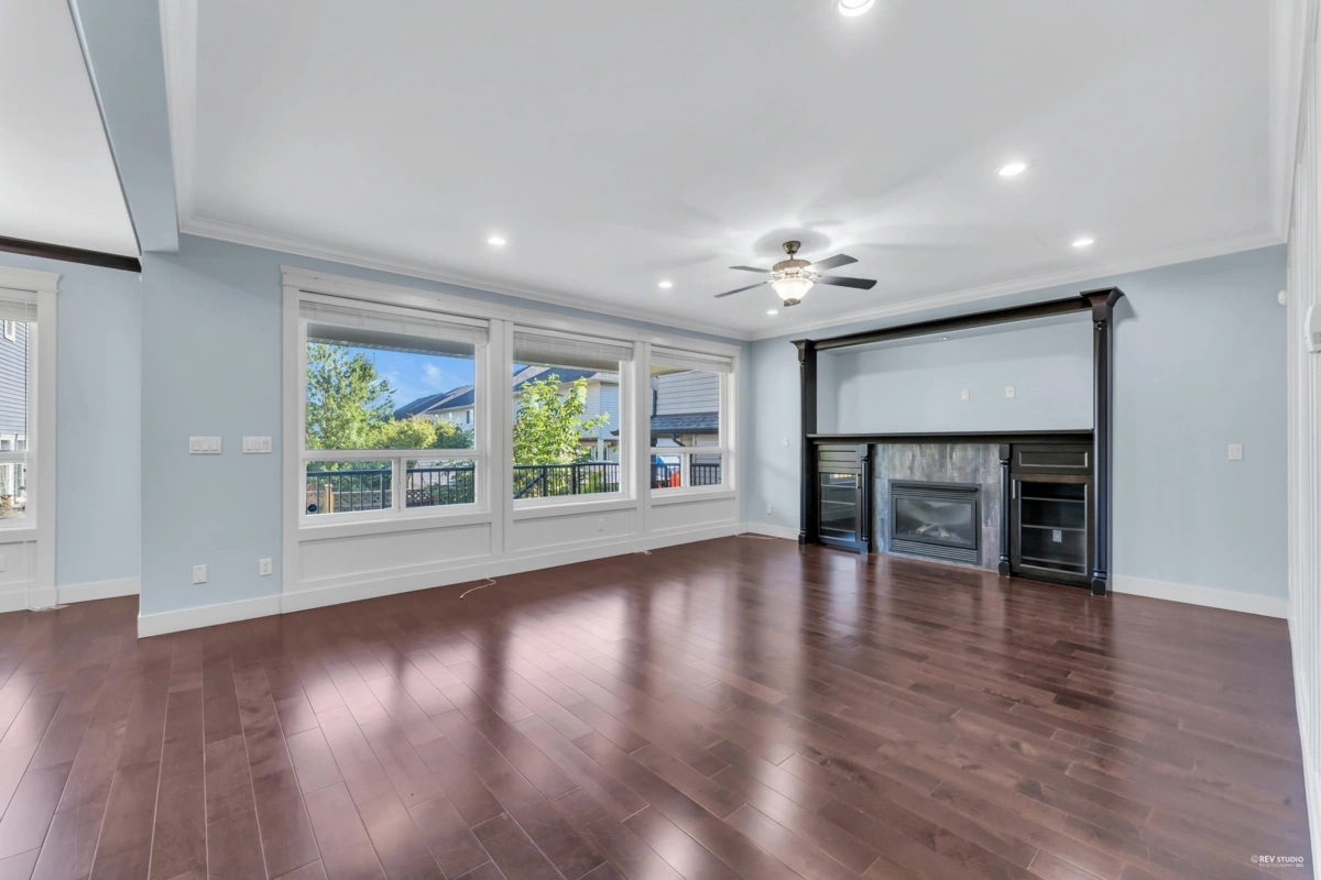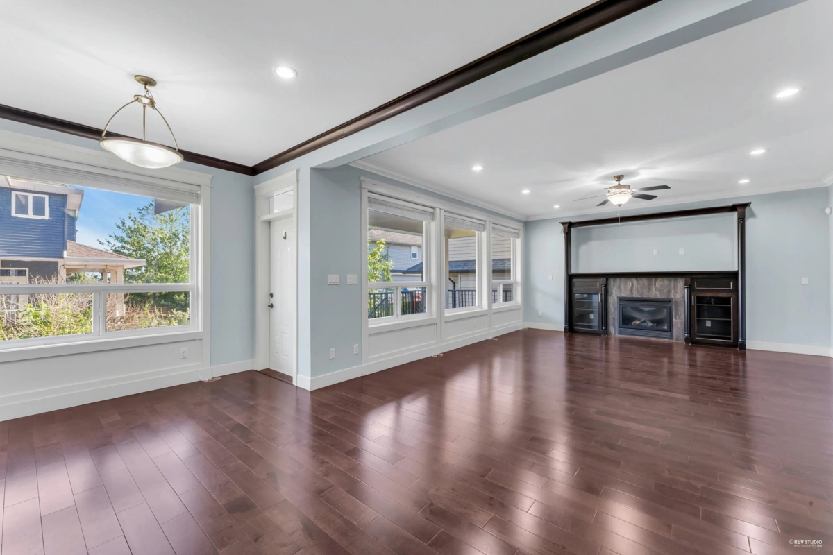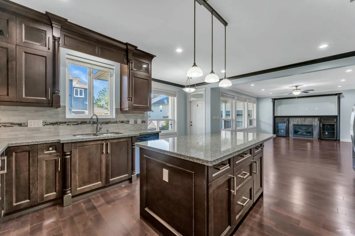 Luxurious home in Yorkson South! Featuring a gourmet kitchen with granite counters, large island with built-in drawers, custom maple cabinets, S/S appliances & gas stove. Main floor offers a spacious office/living space with wainscoting, plus a bright family room with gas fireplace, custom built-ins & engineered hardwood floors. Upstairs includes a primary suite with walk-in closet & organizers, ensuite with jacuzzi tub, granite counters, maple cabinets, separate showers & mountain views. Radiant heat, designer lighting & crown mouldings throughout the top two floors. Basement includes media room & 2-bed legal suite with new laminate flooring. Close to Lynn Fripps Elementary, parks & shopping.