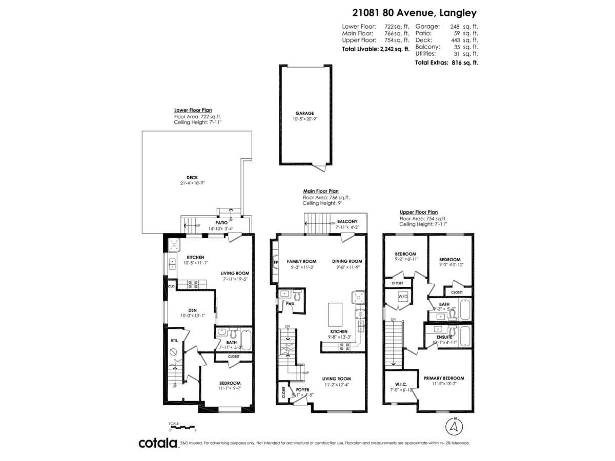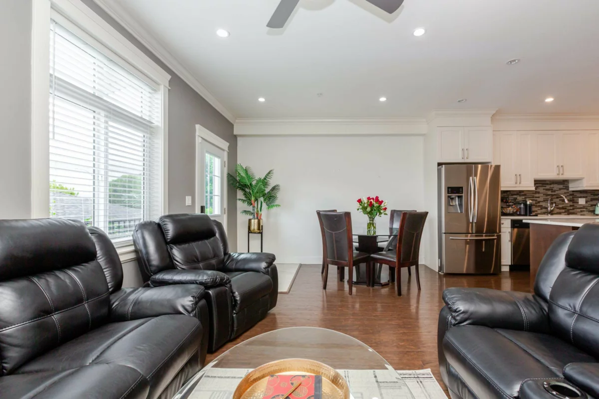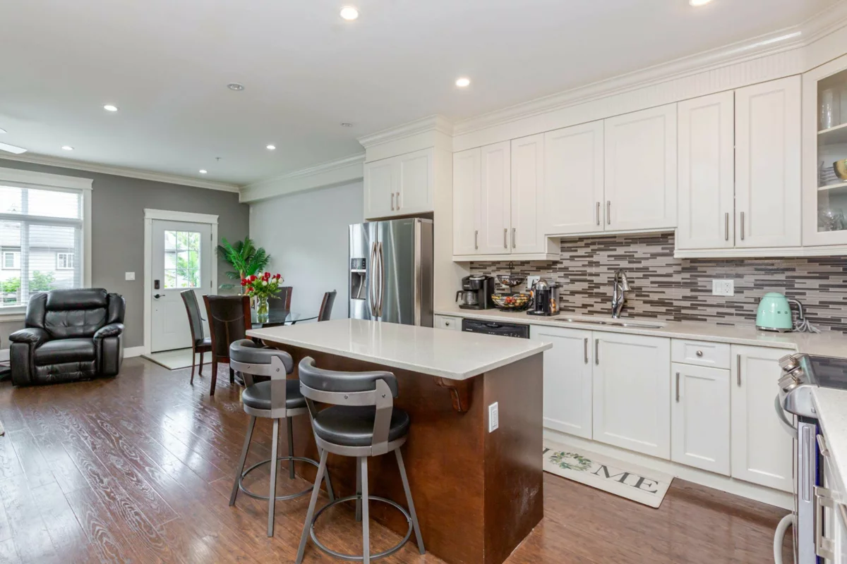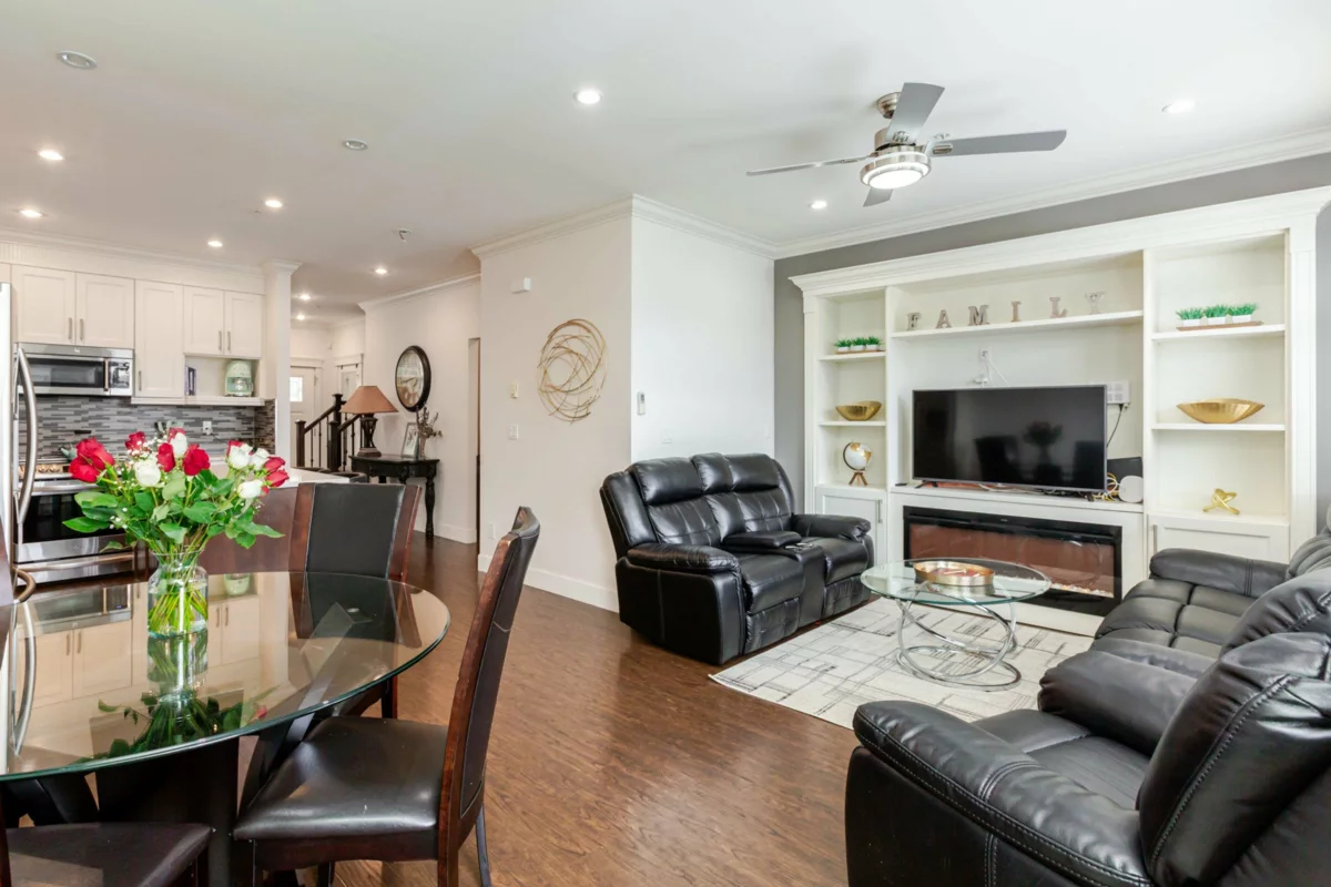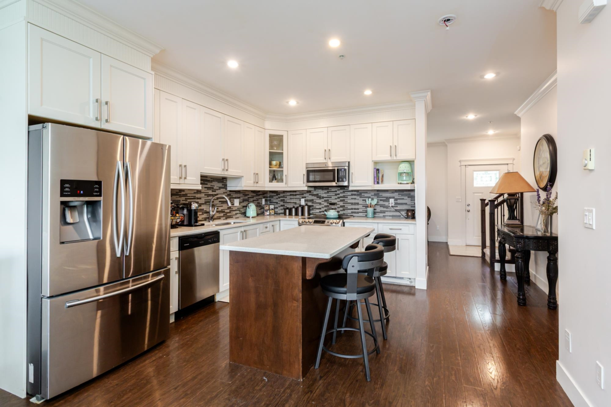 NON STRATA END UNIT ROWHOME with basement, LIVE STRATA FREE in this stunning 5 bdrm, 4 bath home w/ separate entrance suite for guests or extended family in sought-after Willoughby. Chef’s kitchen w/ quartz, S/S appliances, open-concept living, sunlit windows, & private yard—perfect for entertaining. Retreat to a luxe primary w/ WIC & spa ensuite. Finished bsmt offers 2 bdrm, rec/media space or private living area. Detached garage + 2 extra parking. Central Location Walk to schools, shops, parks, transit, Quick on/off access to HWY 1 for seamless travel to Vancouver, Surrey, and the Valley, An Immaculate, move-in ready—just unpack & enjoy! Quick Possession available. Don’t miss out—book your private tour & embrace the Willoughby lifestyle!