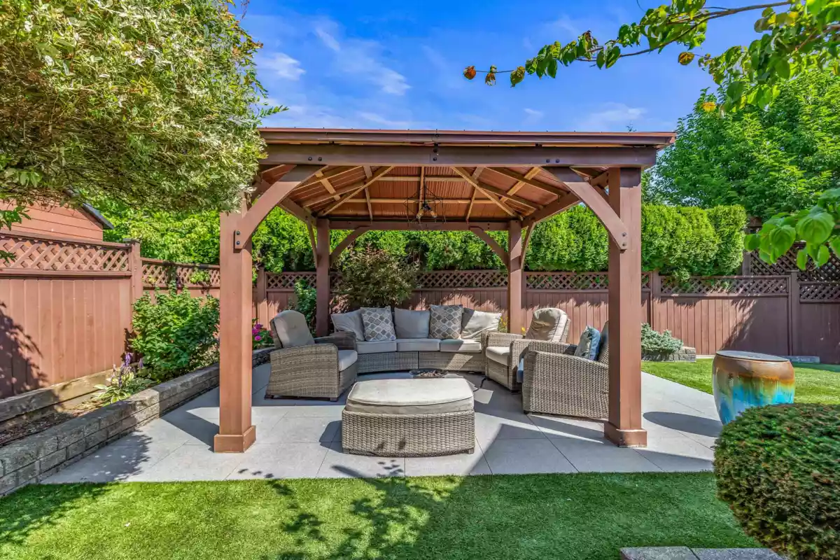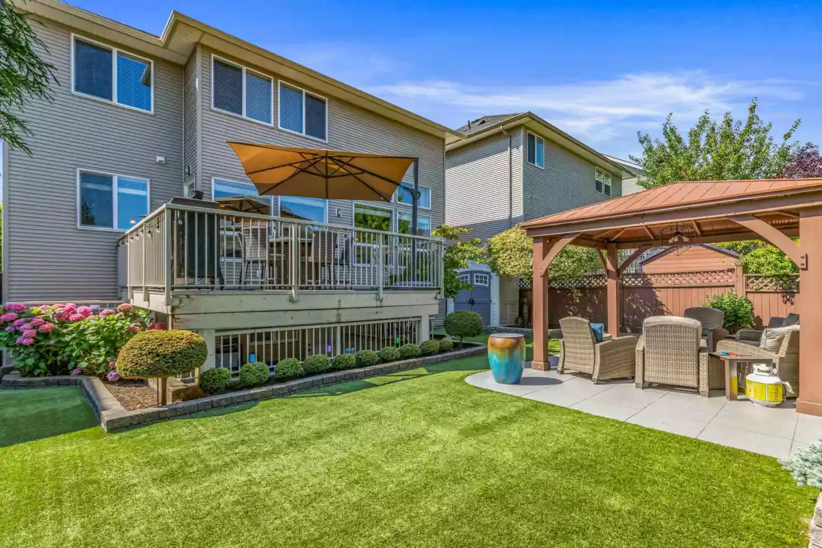 Stunning 6-bedroom detached home in sought-after Yorkson built by reputable Benchmark Homes! This spacious family home features vaulted ceilings in the bright and open living room, extra den on main floor ideal for home office, 4 bedrooms upstairs including an oversized primary with walk-in closet and ensuite, plus a 2-bedroom legal suite below—perfect for mortgage help or extended family. The updated backyard is an entertainer’s dream with low-maintenance artificial turf, a gazebo-covered patio, and a huge deck for outdoor living. Bonus features include air conditioning and quality finishes throughout. Located on a quiet street, close to schools, parks, and all amenities. A perfect blend of space, comfort, and location!