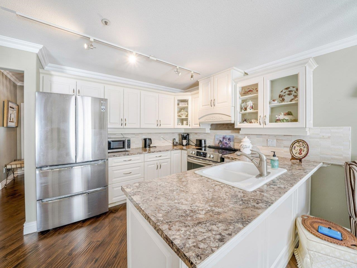 Great southwest exposed corner unit in sought after Royal Oaks. Good complex in the heart of Tsawwassen, only steps to restaurants, shops, and community centre. Excellent floor plan with 1,315 sq ft, 2 bedrooms and 2 full bathrooms. Unit features the ultimate in condo living with southwest exposures including large private sun drenched deck. Beautifully renovated and absolutely stunning throughout. Large storage locker and 2 parking stalls. Don't miss this great unit in a Great development.