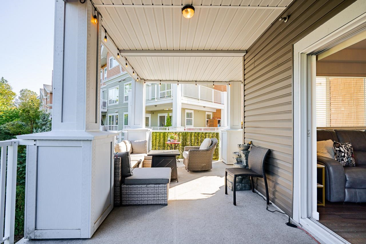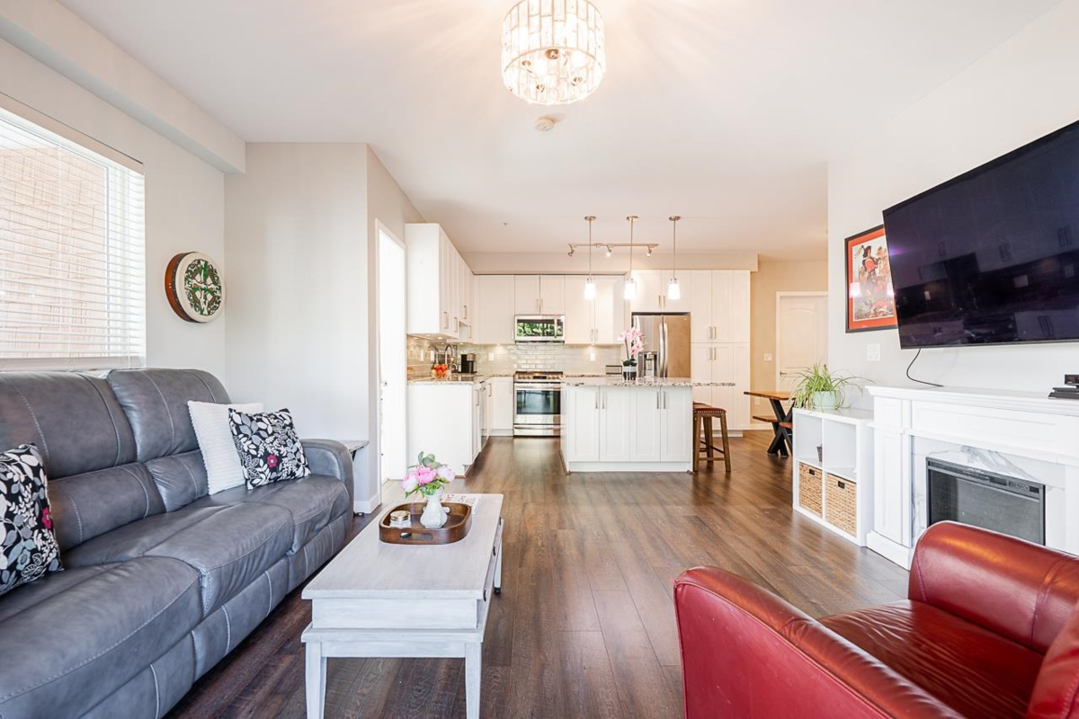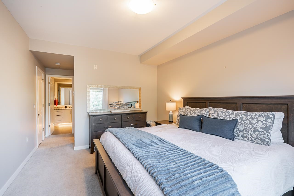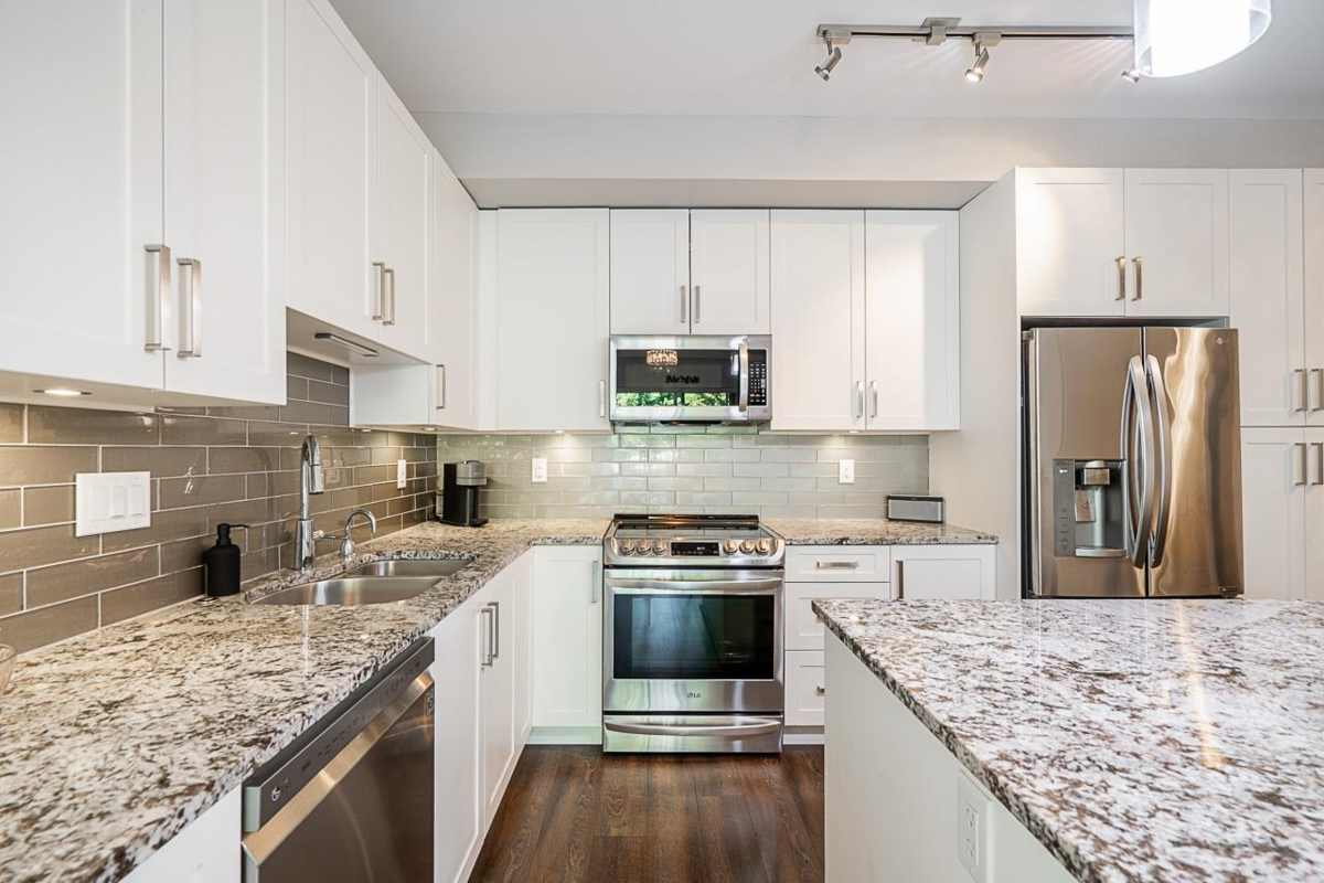 A THREE BEDROOM CONDO AT WATERSTONE??? It doesn't happen often but this gem is waiting for it's happy new owners! Recently painted & move in ready, this corner unit has luxury finishes like white shaker cabinets, full slab granite counter tops, HUGE kitchen island w loads of storage plus, wide-plank vinyl flooring, full-sized stainless steel appliances, on-demand hot water tap & a MASSIVE WRAP-AROUND patio that faces the greenbelt. Included are TWO side-by-side parking stalls with with TWO private mini garages. Enjoy exclusive access to Waterstone’s resort-style amenities: indoor pool, fitness centre, 17-seat theatre, sauna, chef’s kitchen, and more!! This home is just steps to Willowbrook Mall, shops, dining and future Skytrain—this one checks all the boxes. Come see for yourself!