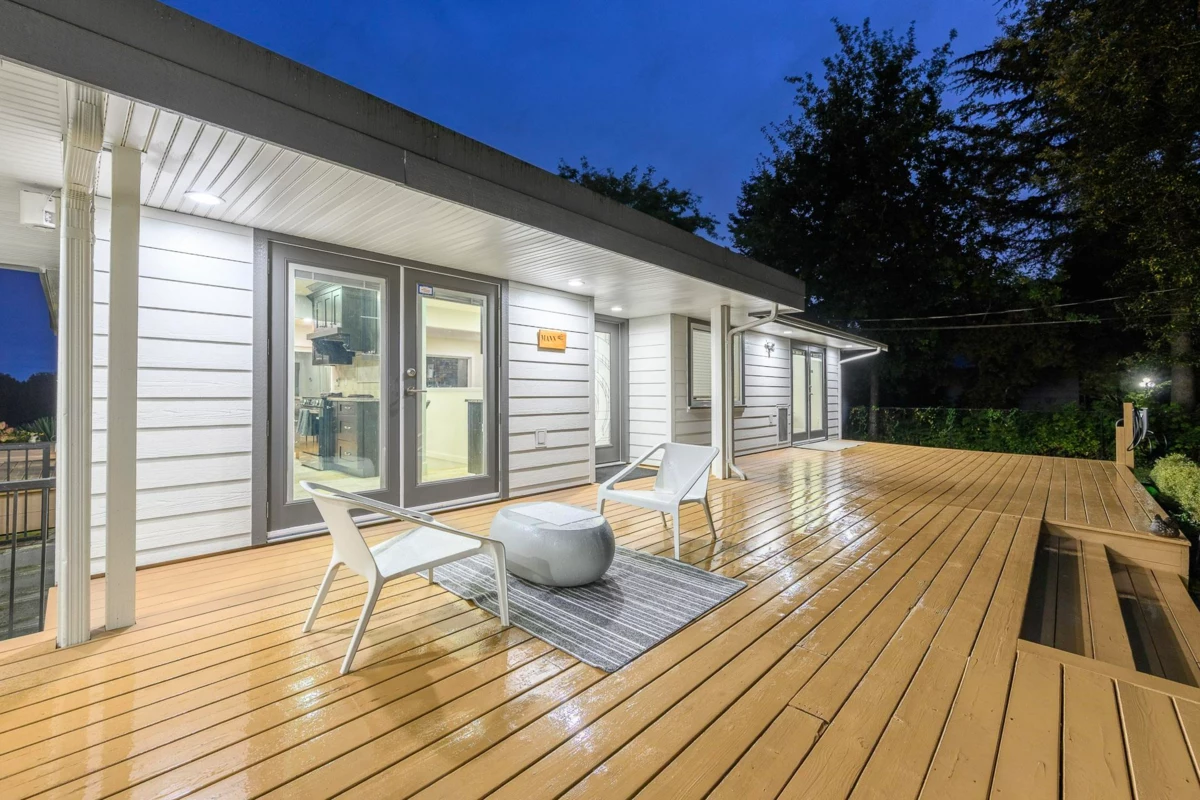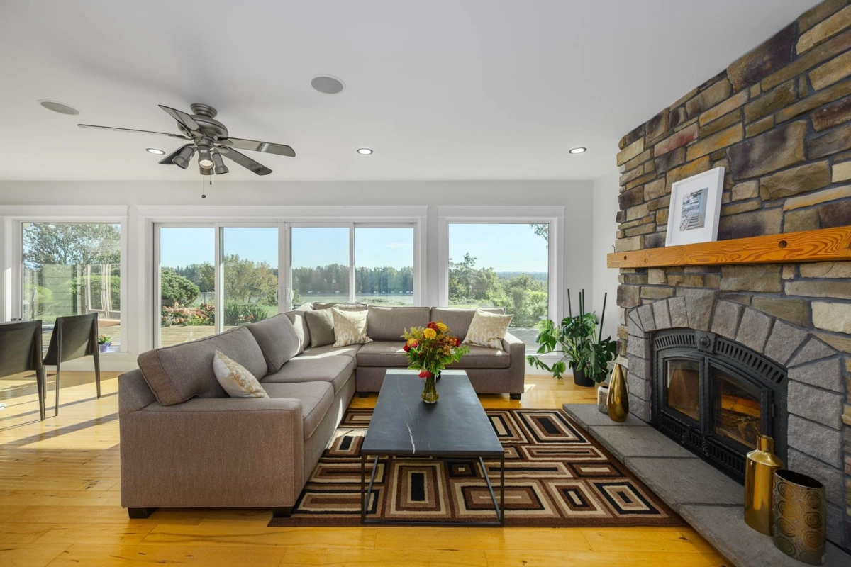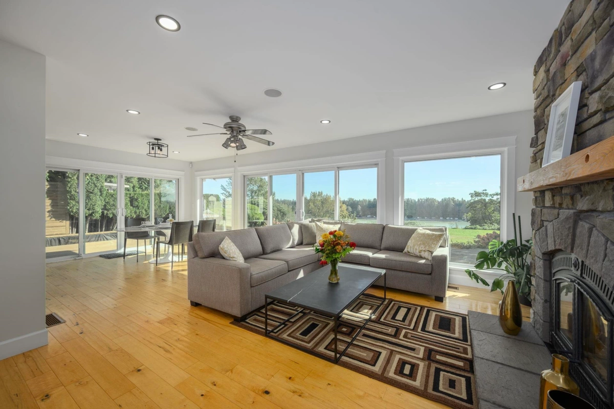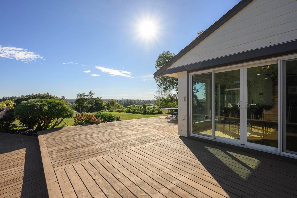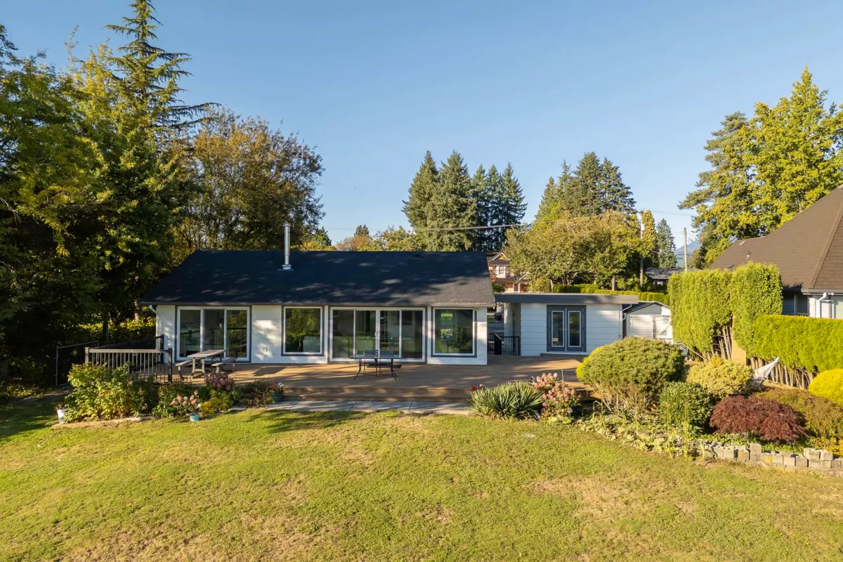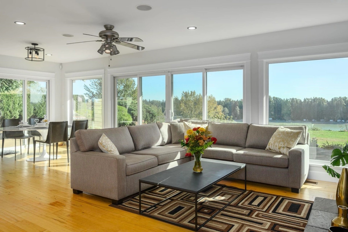 Fraser River southern-exposed waterfront in one of Maple Ridge's most exclusive neighborhoods. Bathed in natural light w/ panoramic river & mountain views from the living, dining, and primary bedroom, this 4-bedroom renovated rancher is a rare find. The open-concept kitchen & living area flow to a fully finished, suiteable basement w/ family room & separate entrance. Don't miss over 2,000 sq.ft. of deck space, & detached rec room for extra family living. All sitting on a flat 16,000+ sq.ft. lot, offering incredible potential to expand or build your dream home. BONUS walking distance to Maple Ridge Hospital, & just 10 minutes to Meadowridge School. Inground pool in place, quotes available for a new liner & equipment. Gated property, by appointment only. Drone and walk-thru video attached.