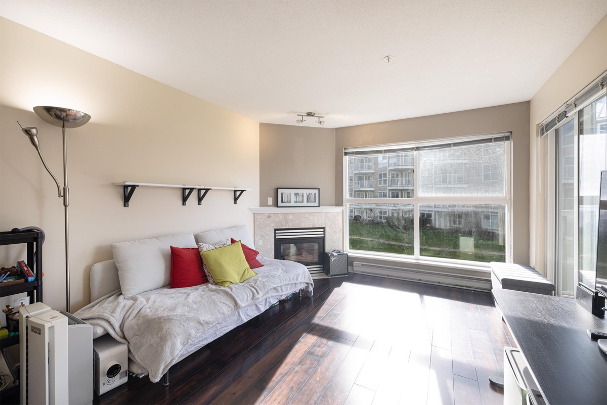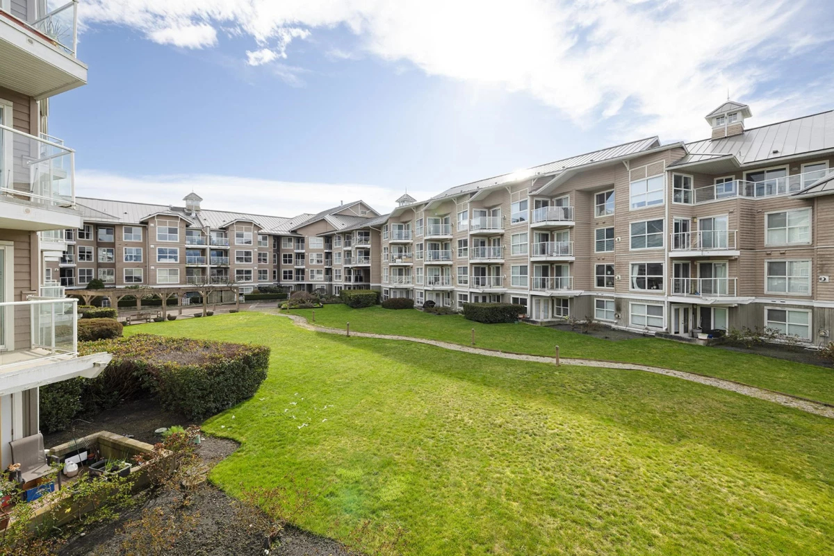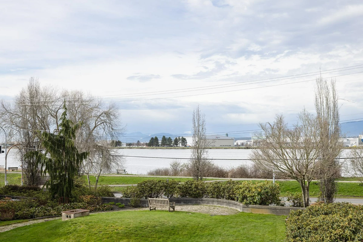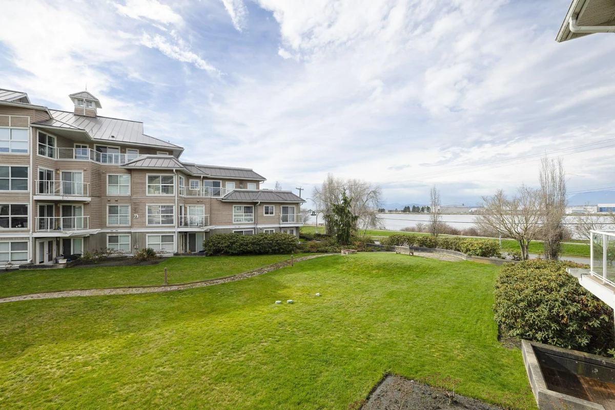 *BEST PRICE IN THE BUILDING*Renovated,modern,bight & spacious 2 bedroom 2 full baths, 963 square foot condo facing the well landscaped courtyard & wonderful west-north river and mountain view. Fantastic layout with open kitchen, separate bedrooms for privacy, gas fireplace, in-suite side by side laundry, covered balcony with great water and mountain view, designer paint, and laminated flooring. 1 secured under building parking (2nd parking available for rent) and 1 storage locker. A very well maintained rainscreen building, metal roof, piping retrofit, common area carpet replaced, with roomy lounge, gym and plenty of visitor parking stalls. Steps to the dyke, trails, shopping plaza at Terra Nova, and Richmond oval. JN Burnett Secondary and Archibald Blair Elementary.