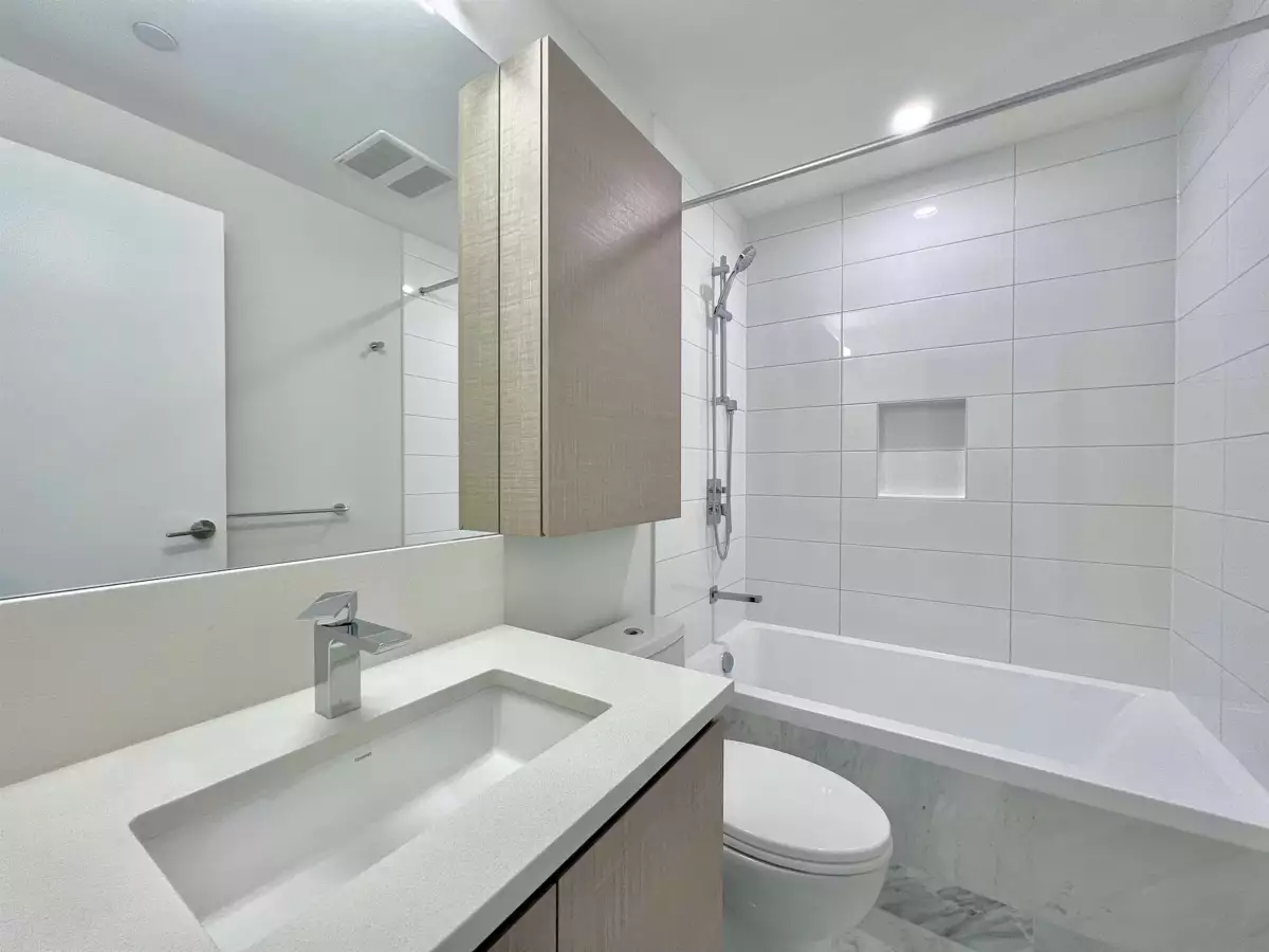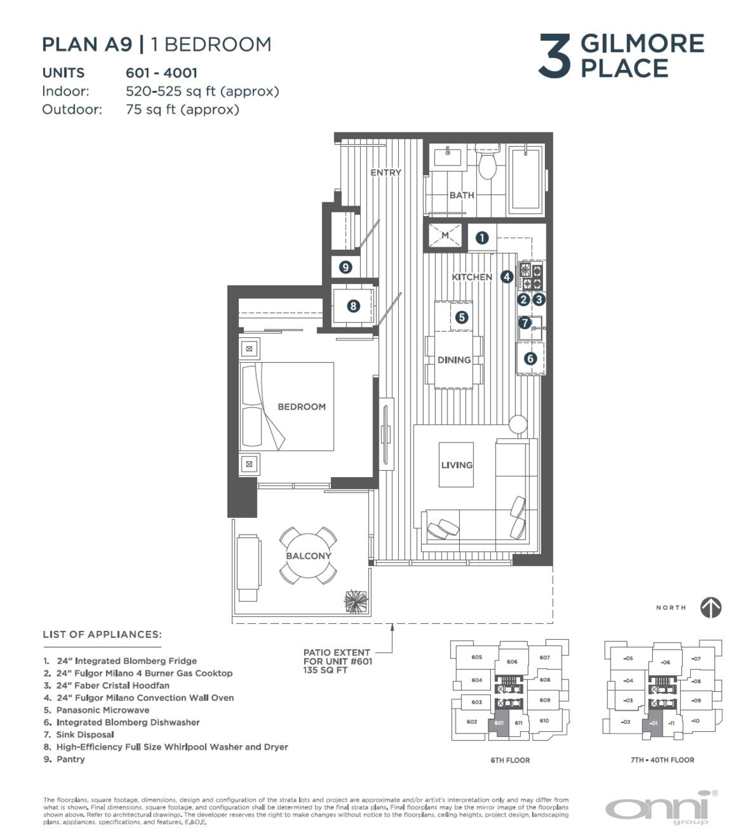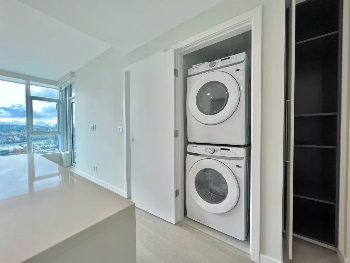 Welcome to Gilmore Place Tower 3, an urban hub in Burnaby, ideally situated right on the SkyTrain Station. This SOUTH-facing one-bed condo offers an open and spacious layout, with expansive windows offer natural light and showcase sweeping city views. European-inspired kitchen is outfitted with premium appliances, including a Blomberg refrigerator and dishwasher, a Gulper Milano gas cooktop, and a convection wall oven, complemented by a versatile kitchen island. A built-in pantry with adjustable interior shelving ensures optimal organization. Residents enjoy exclusive access to over 75,000 sf of amenities, including pools, golf simulator, fitness centre, and etc. Easy access to top restaurants, Brentwood Mall, and the upcoming T&T Supermarket.