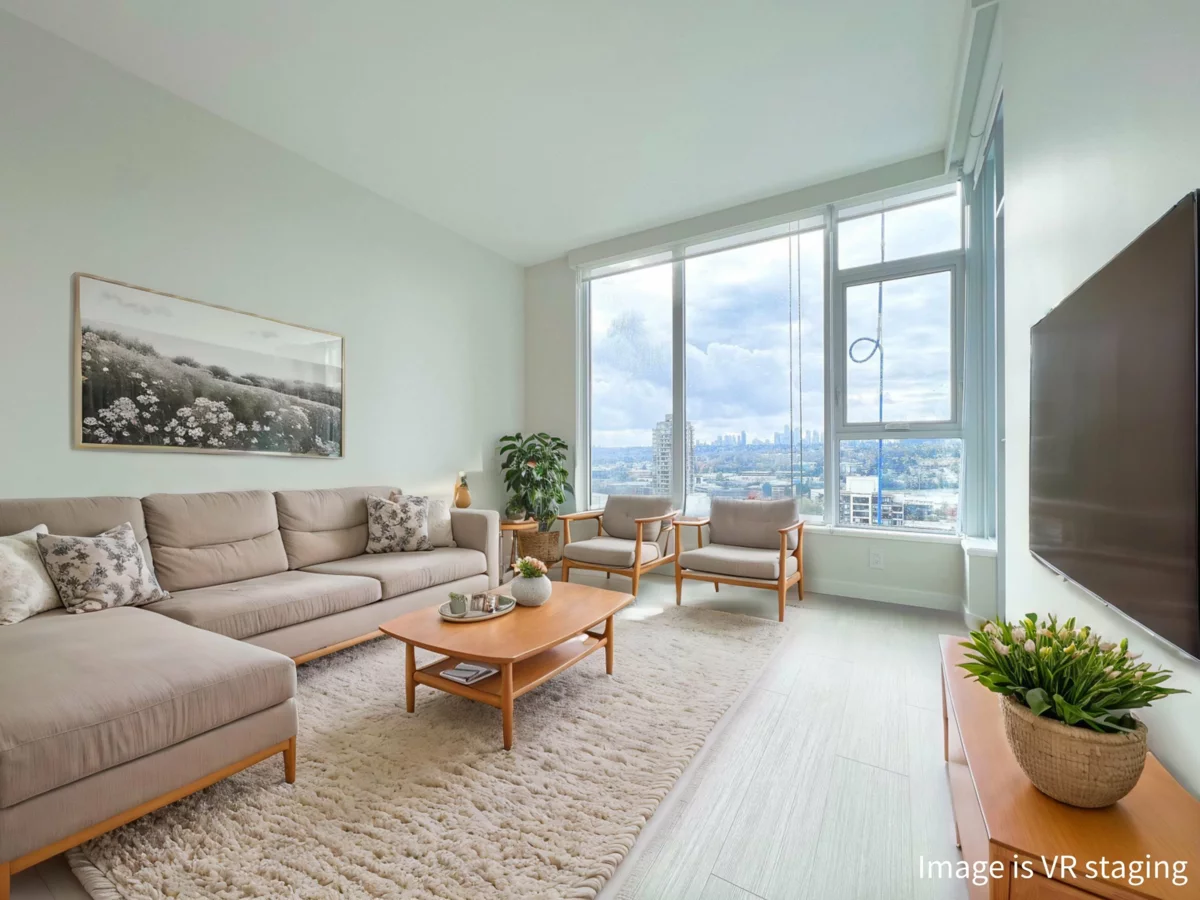 Average size of families in the area adjacent to home for sale 2201 4168 Lougheed Highway is 2.6. This is Low number in comparison to the whole region. Percent of families with children near by the Real Estate Listing - MLS® R2999706 is 49.7% and it is Below Average. % of Married or living common law is around 55% and it is Below Average.