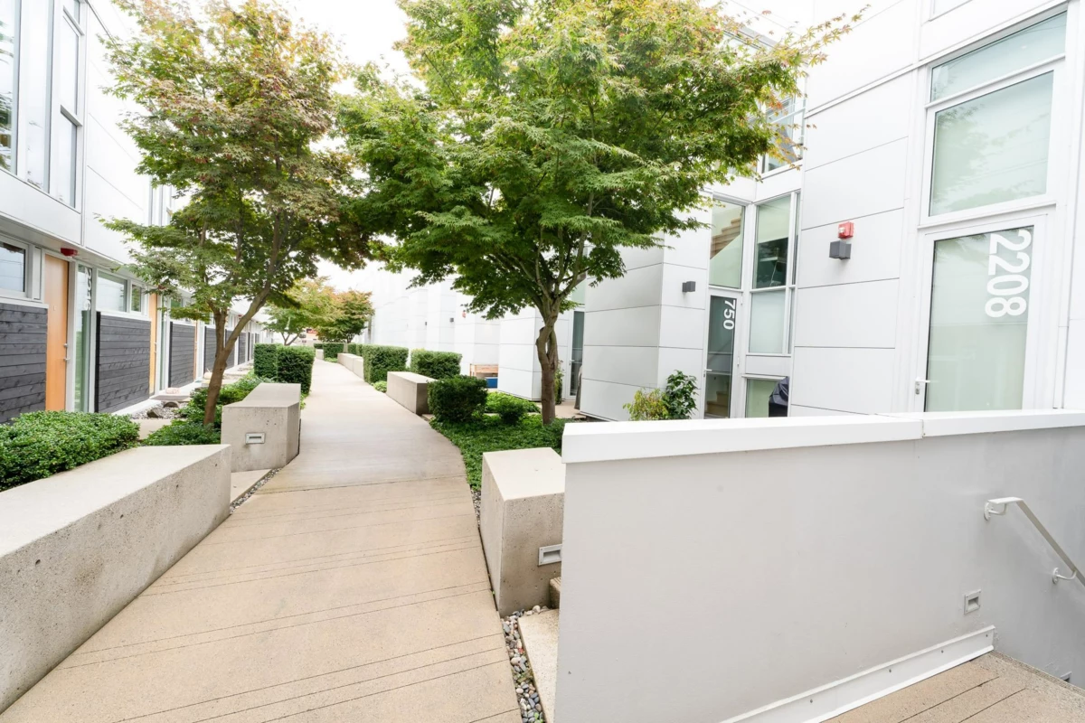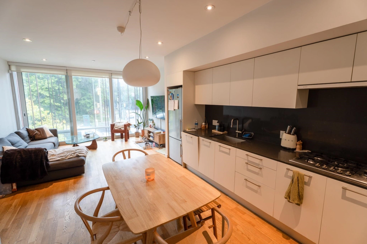 This 2-bedroom, 2-bathroom townhome is a must-see. The 1,088 sq ft space features over-height ceilings, wide-plank oak flooring, and a full wall of windows. Designed by Michael Green Architecture, the home includes a kitchen and bathrooms by lnform lnteriors with Italian cabinetry and lighting from Artemide. Residents will enjoy radiant in-floor heating, an HRV system, and gallery-style white walls. The location is excellent, with Granville Island and the Seawall just a short walk away.