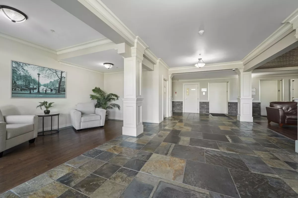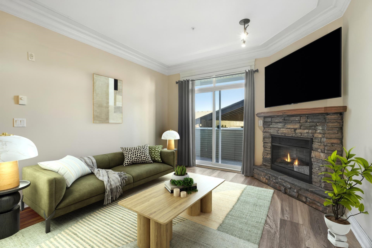 IMMACULATE & Move-In Ready! Nestled in a quiet, GATED community, bright 2 bed, 2 bath home impresses with its spacious design & quality finishes. Featuring 9’ ceilings, crown mouldings, cozy stone fireplace & large sunlit windows, the open layout is bright & inviting. Kitchen offers granite counters, newer appliances & flows into a LARGE Laundry Room with pantry & extra STORAGE - rare find! The oversized primary suite easily fits a king, boasting a walk-in closet & Spa-inspired ensuite with soaker tub, Double Sinks & Heated Floors. Large secondary bedroom. Updates include NEW Flooring, NEW Hot Water Tank & NEW Washer/Dryer. Enjoy sunsets from your west-facing balcony. Excellent Strata - NEW ROOF, LOW STRATA FEES, walk to shops, transit & rec. Option for 2nd PARKING spot. OPEN Nov. 22 1-3