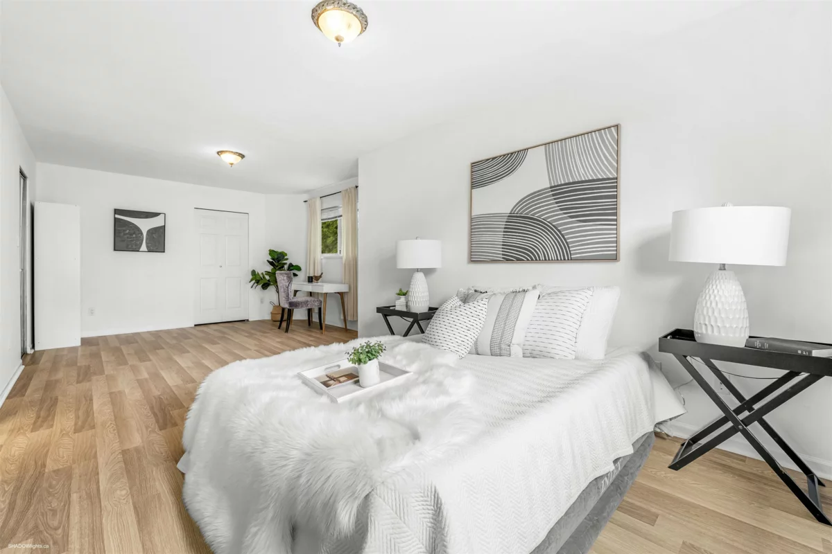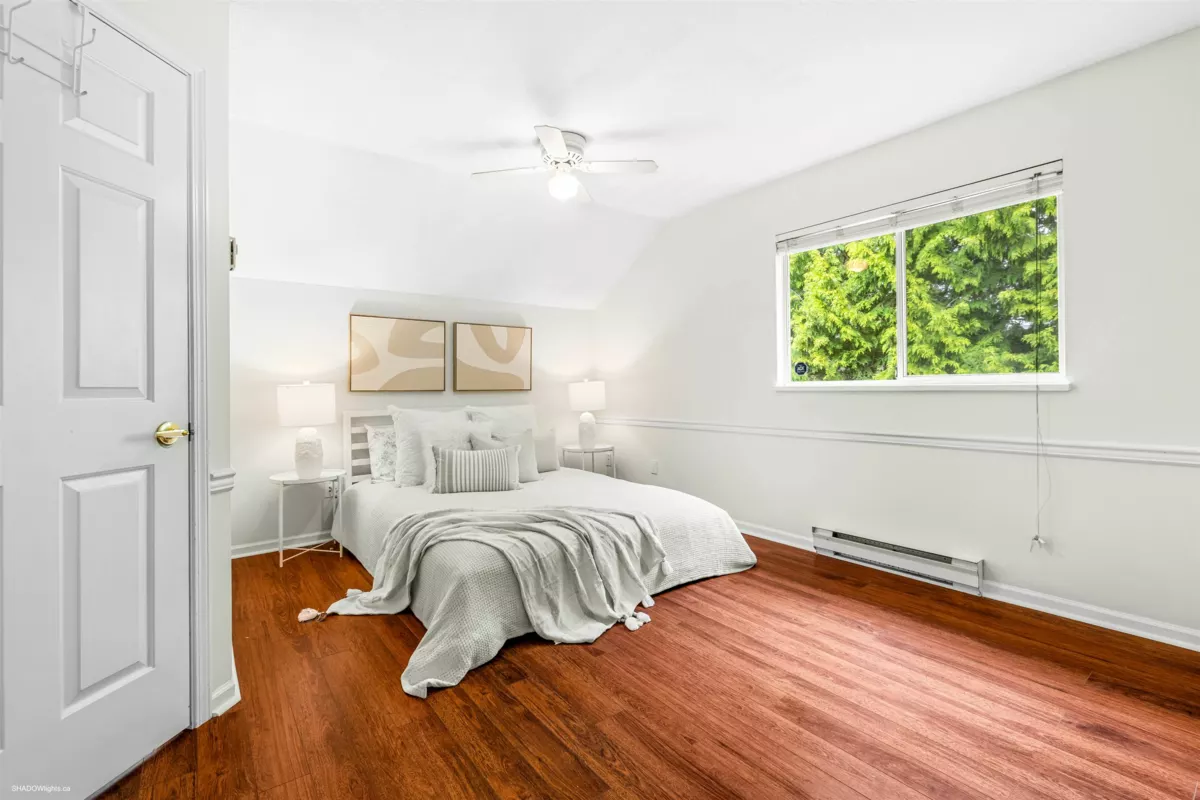 This spacious & bright 1692 sq. ft. 2 storey townhouse is located in a gated & friendly complex close to EVERYTHING including shopping,restaurants, transit, commuter routes & schools.The floorplan offers spacious room sizes with vaulted ceiling, a 292 sq ft primary bdrm on the main with W/I closet, 2nd bedroom, bright kitchen with dining area & open concept living room. Upper flr has another large primary B/R with dble closets & ensuite PLUS a large loft space. Relax on lovely east patio or the sundeck plus enjoy a great fenced yd. The townhouse includes a single car garage + another space and is located in quiet location. Perfect opportunity for a great purchase!