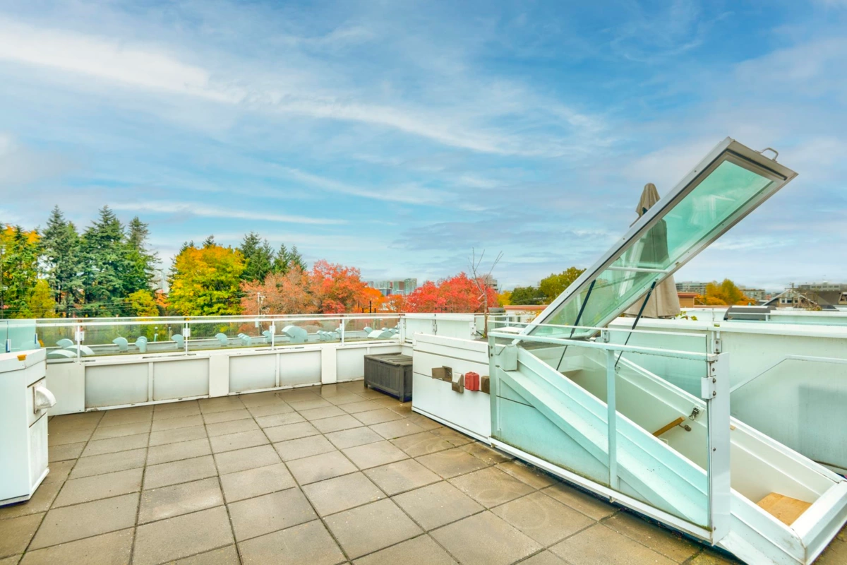 Sixth + Steel, a luxury modern townhouse development designed by renowned architect MGA in the heart of Fairview Slopes. Situated off West 6th, this quiet & secure inner courtyard home offers an efficient floor plan with over 1400sqft of living space, radiant hardwood flooring throughout, large principle rooms, a sleek European designed kitchen with quality appliance and ample storage options. Upstairs, you'll find a spacious private rooftop deck, perfect for entertaining with natural gas and water line. Additional amenities include side-by-side parking with EV charging and a storage locker. Maintenance fees cover heat, hot water, and natural gas. Pets and rentals are permitted in accordance with strata bylaws. Some photos have digitally staged furniture. Easy to show by appointment.
