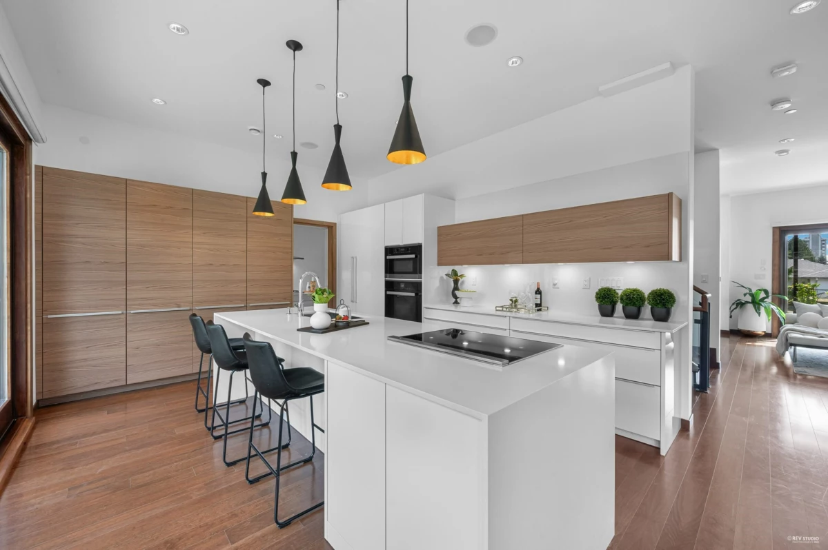 This magnificent custom built residence in prime Dundarave offers approx. 4,000 sqft of luxurious living across 3 expansive levels. Thoughtfully designed w/ a bright, open concept layout, it features soaring 10 ft ceilings on the main level, seamless indoor-outdoor flow through California style folding glass walls opening to a private sun filled flat backyard. The gourmet German Poggenpohl kitchen includes a large island, breakfast bar, Miele appliances & fully equipped wok kitchen. Upstairs hosts 4 spacious bedrms. Lower level features media rm, wine cellar, recreation rm & bedrm. Glass roofed wraparound balcony, Smart Home system, backup generator, RV Parking and more. Minutes away from top schools, shopping & community amenities. Open Sunday Oct 26, 2-4pm