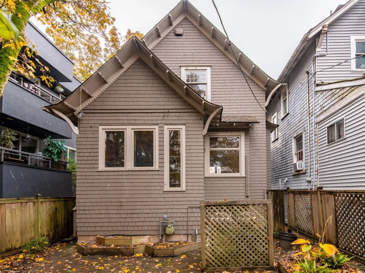 Charming 2 BR, 1 bath, Kitsilano character home on a 25' x 112' south facing RM-4 lot w/ 2 pkg & lane access in the heart of Kits. Cozy gas fireplace, high ceilings & heritage trim in LR & beautifully refinished Fir floors on the main & up in the BRs & landing. Updated kitchen w/ tons of cabinets, stainless appliances, granite countertops & cork floors. Two BRs, spacious office/ landing area & full bath upstairs. Front BR features sliding doors to a charming balcony sitting area. Easy to live in or dev. the unfin bsmt. Enjoy the best of West Side living, 4th Ave to Broadway shops & restaurants & a short walk to Kits beach. Easy transit to UBC, YVR & downtown. Updates include 70 amp breaker panel, high efficiency gas furnace, new gas HWT. A rare land value offering w/ flexible options.