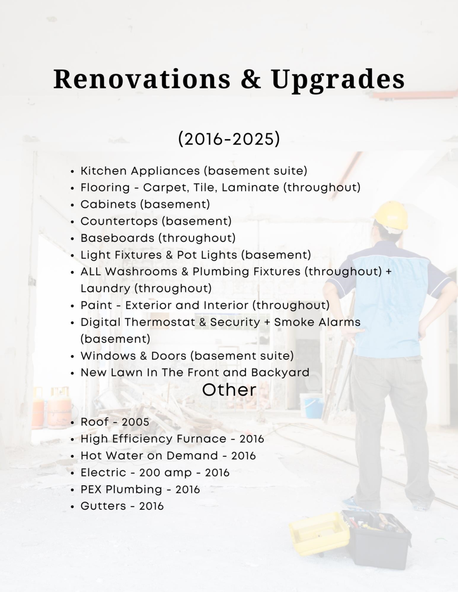 RENOVATED & MOVE IN READY home located in Central Abbotsford. This beautiful home is located in a quiet neighborhood & is perfect for 1ST TIME BUYERS, INVESTORS, FAMILIES & features 4 bed & 4 bath (1 bedroom LEGAL SUITE mortgage helper). Open floor plan: family room with the kitchen overlooking the HUGE PRIVATE BACKYARD which has a LARGE SUNDECK great for entertaining guests (gas BBQ). SOME renovations/upgrades include: NEW washrooms and plumbing fixtures, gutters, appliances, flooring, cabinets, countertops, lighting, paint, landscaping, PEX plumbing! - TOO MANY TO LIST! Double garage with ample parking. MINUTES AWAY from transit, schools, shopping, restaurants, grocery stores & HWY access. Showings by Appt outside of Open House. OPEN HOUSE Sat & Sun Nov 29th & 30th @ 2-4PM.