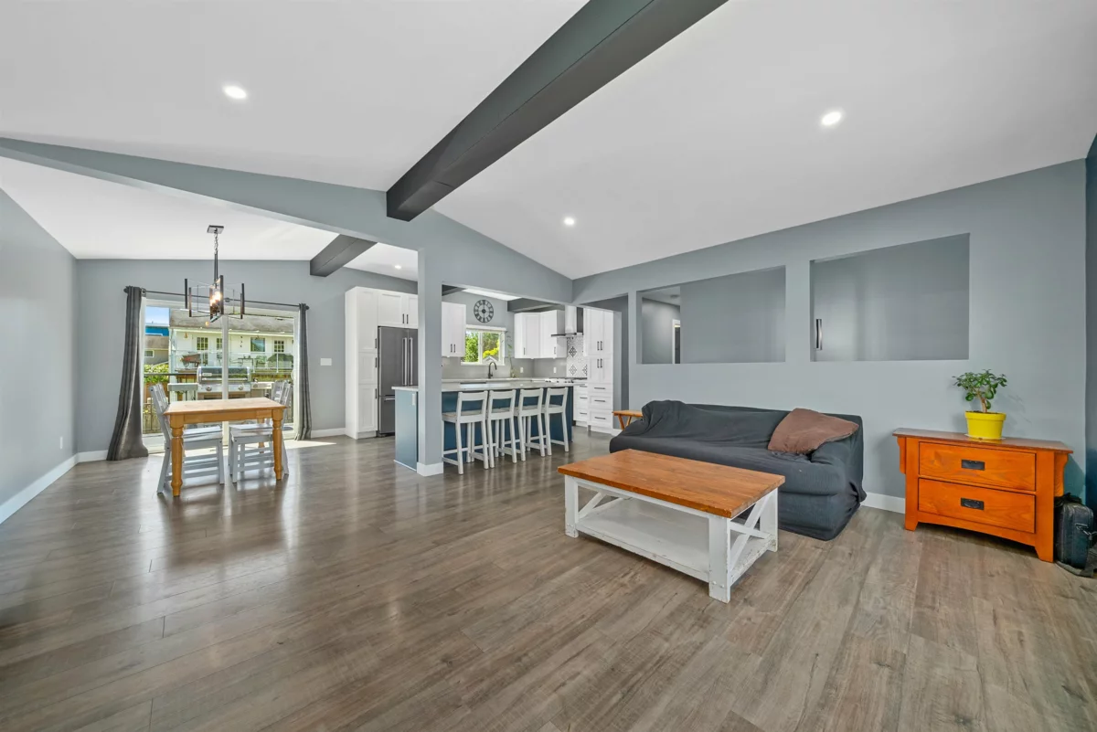 Beautifully updated 3 bedroom & den, 2 bathroom family home, offering 2,058 sqft of versatile living space on a generous 7,200 sqft lot. Located on a peaceful no-through road, this home is perfect for families seeking space, privacy & convenience. The layout is both functional & inviting with tasteful renovations throughout. The spacious kitchen & open living areas flow seamlessly to the private backyard & open deck with a large yard, ideal for entertaining or relaxing. Absolutely huge driveway perfect for all the toys and RV. Enjoy being steps to schools, parks and shopping. Come take a look! Open House Sunday November 30, 2:00pm-4:00pm
