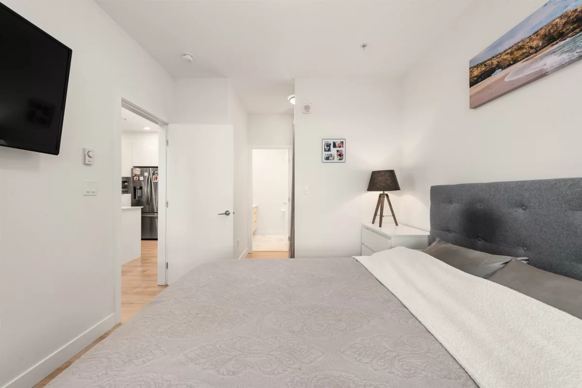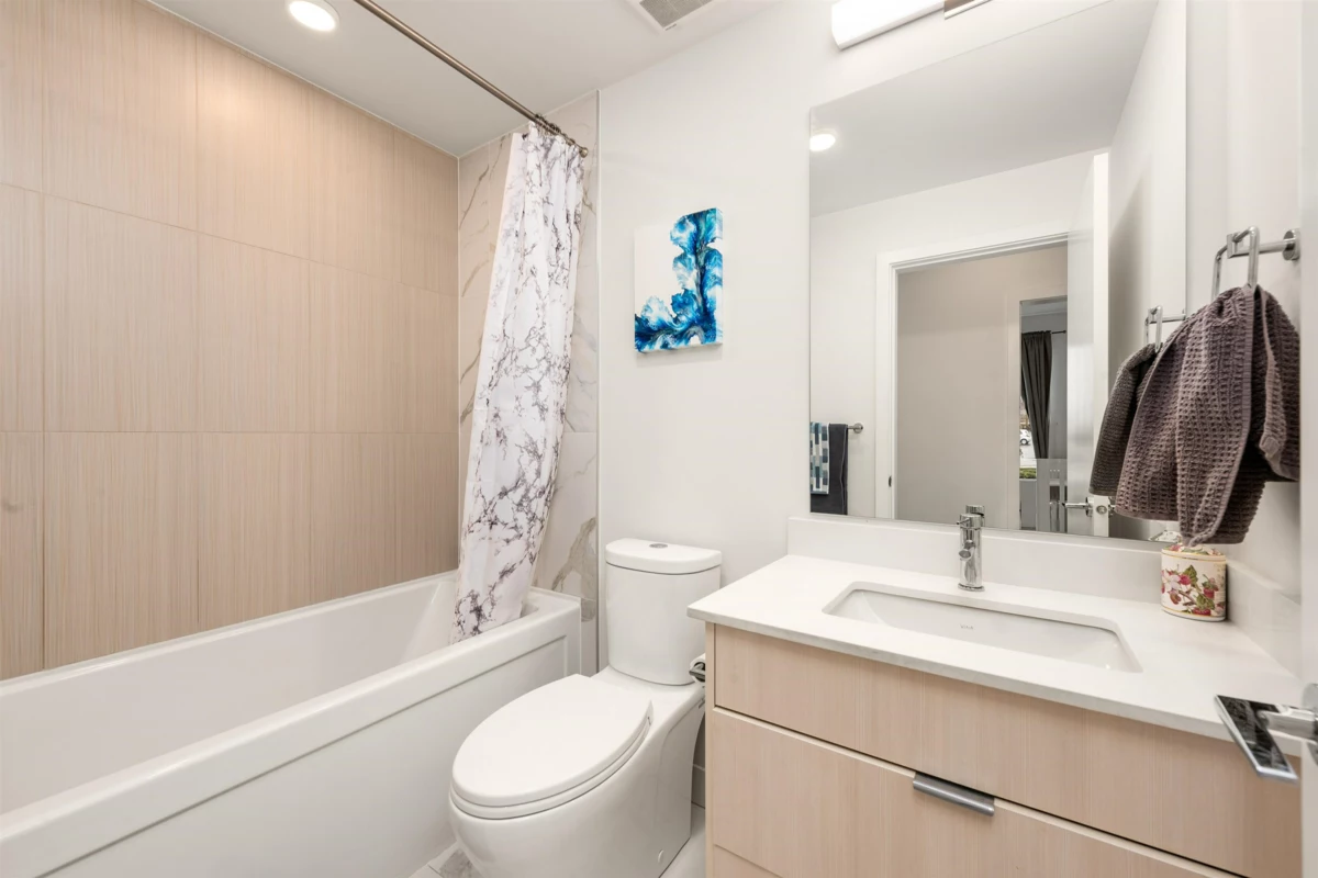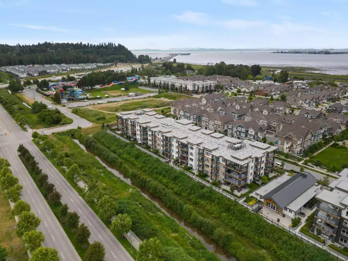 Welcome to Peregrine South, nestled in the vibrant Tsawwassen community. Discover a bright and airy second-floor condo, featuring two bedrooms and two bathrooms, complemented by an east facing patio for serene evenings. Functional floorplan with an open-concept kitchen, with bar seating for three, stainless steel appliances—including a double-door fridge—and elegant quartz countertops alongside a chic, oversized single under-mount sink. Eight-foot ceilings enhance the sense of space and luxury throughout. Enjoy the convenience of a full-size stacking front-load washer and dryer, 1 secure underground parking, and a dedicated bike storage locker. Residents have access to exceptional amenities, including a fitness centre and clubhouse. Steps to the water, and shopping come see for yourself!