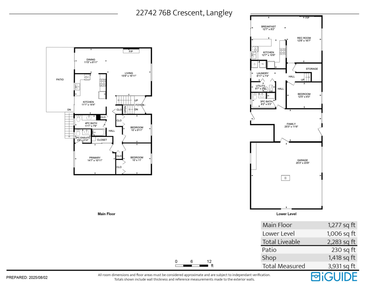 | Main Level | Primary Bedroom | 14'7 x 14'7 ft |