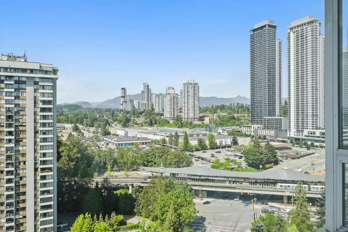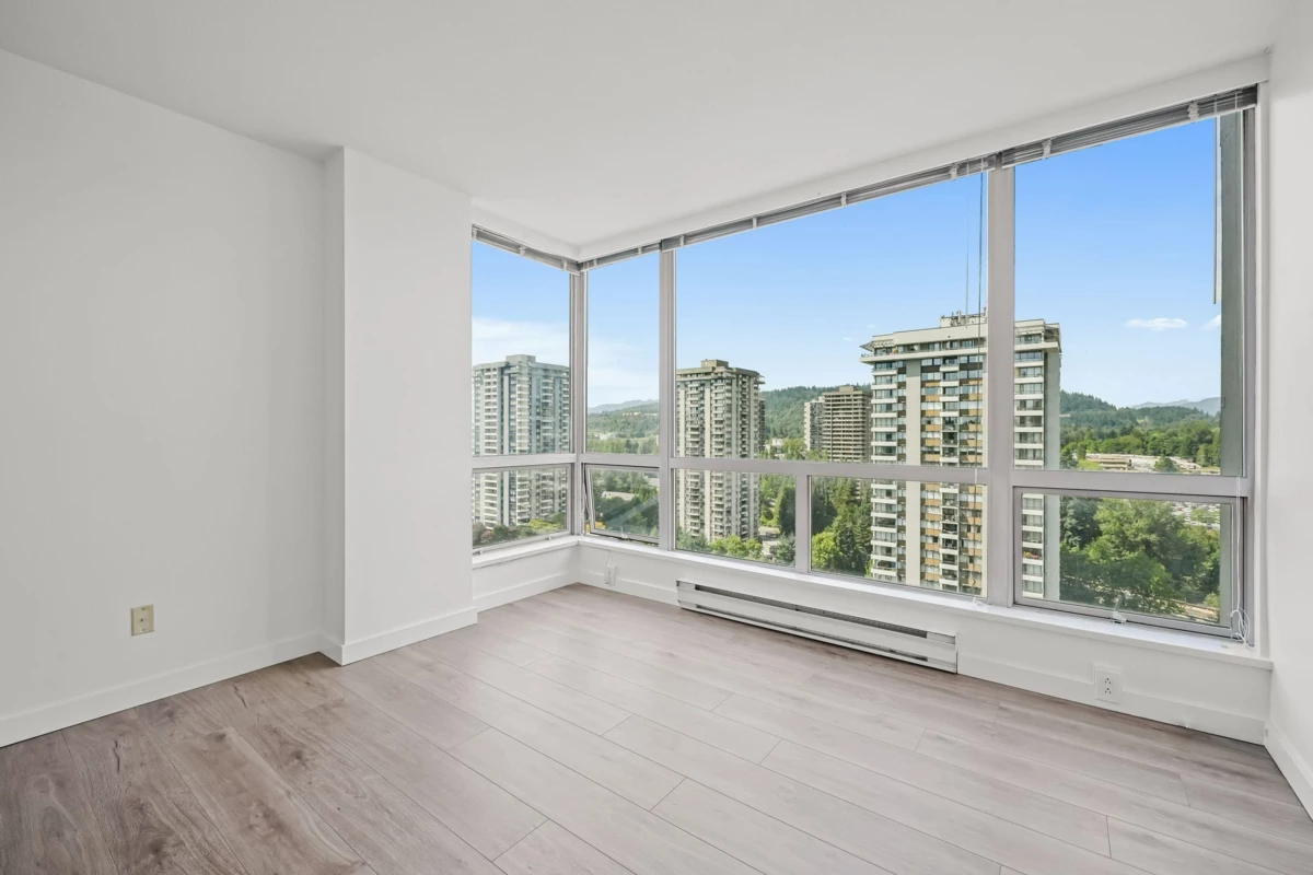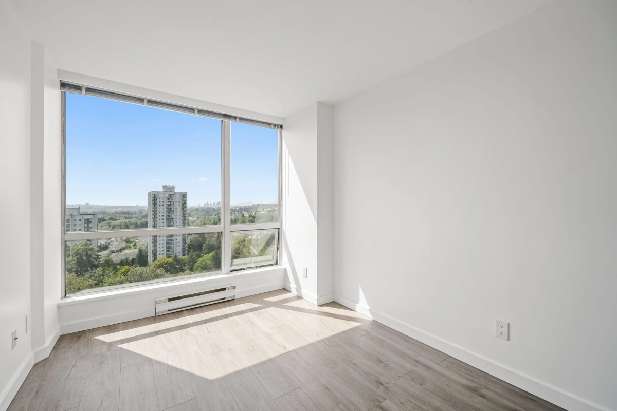 *City Views & Prime Convenience: Renovated 3-Bedroom in North Burnaby* Enjoy comfort, space, and a vibrant location in this updated 3-bedroom, 2-bathroom corner unit in the heart of North Burnaby. Spanning 1,215 sqft, this Northwest-facing home captures stunning city and park views through expansive floor-to-ceiling windows, creating a bright and inviting atmosphere. The functional layout features a large living room, separate dining area, three generously sized bedrooms, and two full bathrooms—ideal for families or those seeking extra space. Thoughtful updates include new wide-plank laminate flooring, upgraded bathrooms, and newer appliances. Located just steps from Lougheed SkyTrain, Lougheed Mall, Park, cafes, and an unbeatable location. || *Virtually Staged* ||