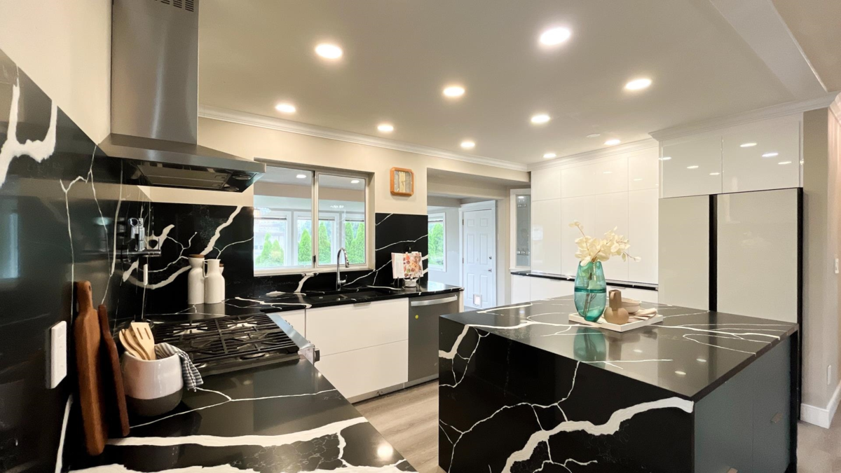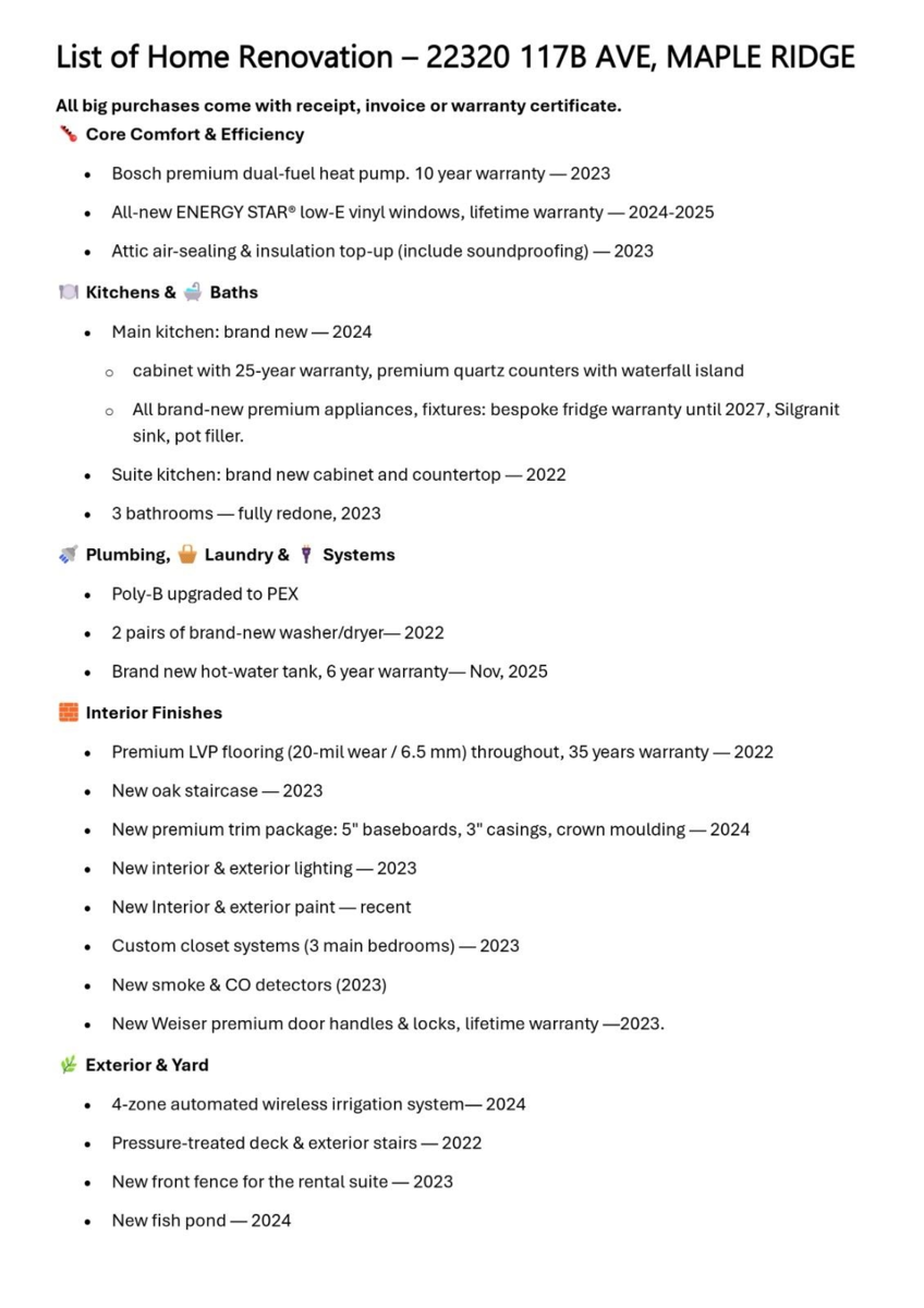 Best value for size & features: newly renovated 6-bed, 3-bath home on quiet cul-de-sac with no rear neighbours. Turn-key, $200K+ invested: brand-new kitchen (quartz counters, premium appliances), renovated baths, all-new windows, new premium vinyl flooring, new heat pump/AC, hot water tank, Poly-B replaced; and so much more in the Upgrades Sheet. Main level offers 3 bedrooms, including a private ensuite. Downstairs features a self-contained in-law/rental suite with separate entrance, plus a large rec room for a gym/playroom/media room, or 2nd mortgage helper. Outside: enjoy a private, sunny yard with organic garden beds and a fish pond. Parking stands out: double garage + extra-wide driveway fits RV and boat. Schools, shopping & parks are minutes away. Quick, flexible possession available.