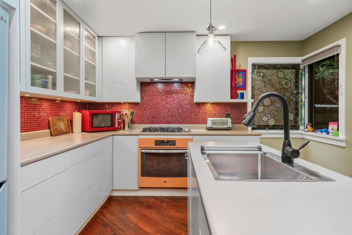 Fully reno'd in 2017 rancher backing onto Canyon Park & next to Eliza Kuttner Park. Open living-dining area with comfy gas fireplace & treed outlook. Eat-in KI with custom cabinets, gas cooktop, elec. oven, sink/prep island, skylights & storage opens to large deck. Huge main BR/den/office area was originally 2 BRs & could be put back to 2-BRs for total 3-BRs. Current second BR/LR with stacked Blomberg washer/dryer, sink/counter & closet opens to rear deck. Reclaimed fir flooring in main areas & Marmoleum flooring in KI & BA. Custom bath features stone sink & clawfoot tub/rain shower, & skylight. Perfect location for outdoors enthusiasts: biking, hiking trails, kayaking, and local skiing! Large fenced rear yard & deck/patio for entertaining.