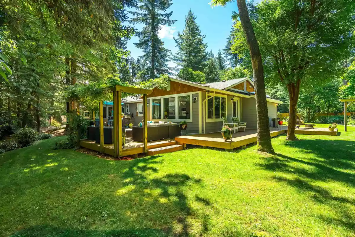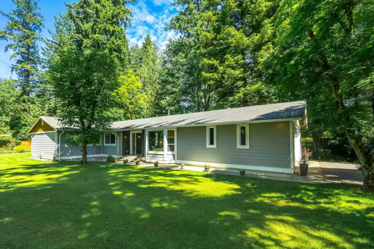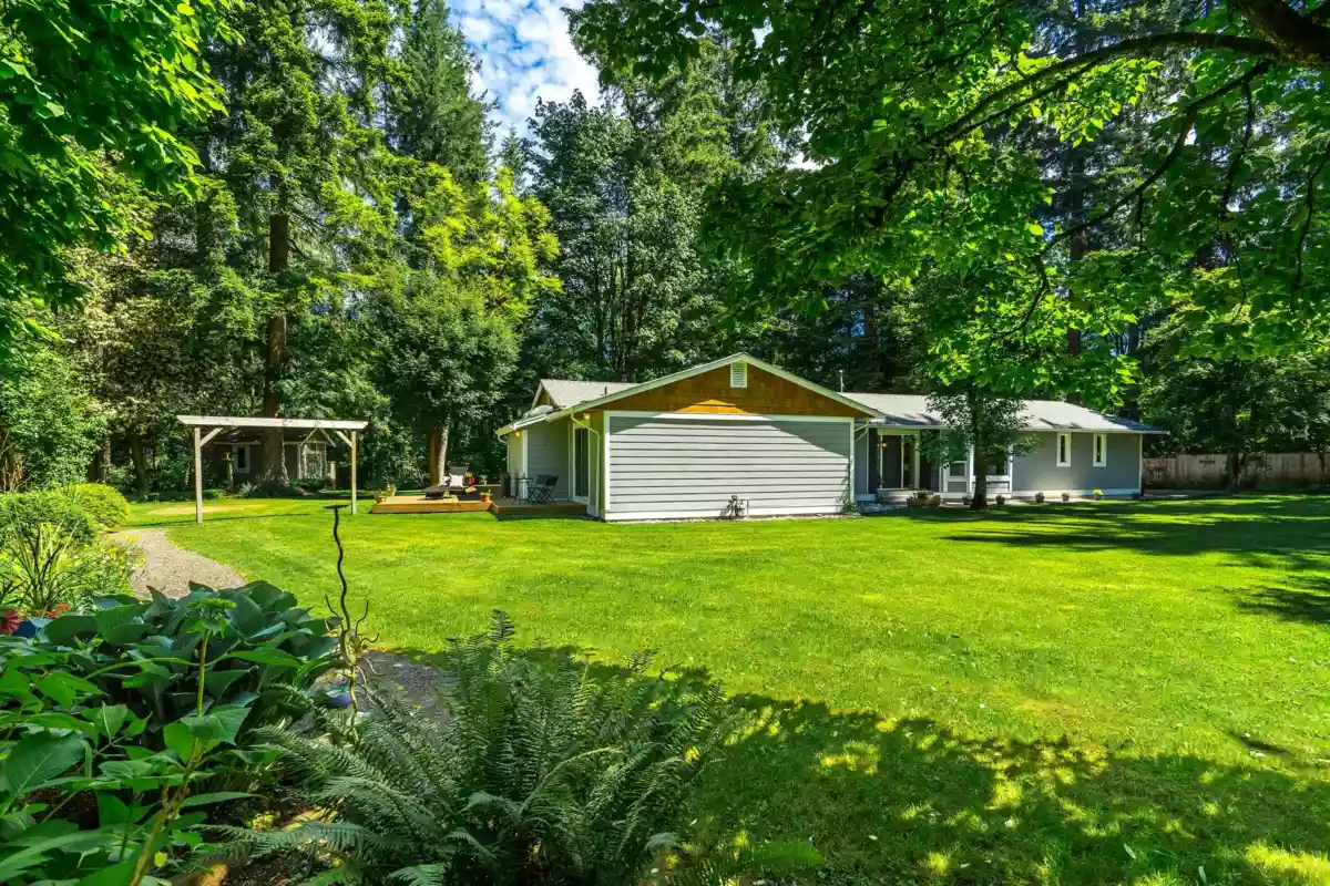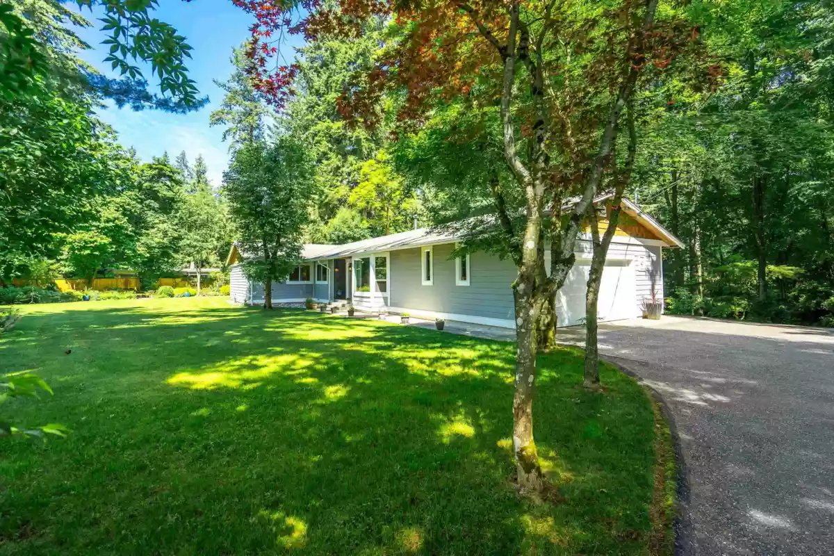 RANCHER AND GUEST COTTAGE ON 1 ACRE! ULTIMATE PRIVACY! Property feels like an enchanted garden! Renovated 2000 sq ft rancher with 3 bedrooms and 2 full bath. Inviting outside space with over 1000 sq ft of deck, patio kitchen area with built in BBQ. So nice for entertaining or relaxing. Property slopes down with dry gully (no water course) and then levels out at the cottage area. Totally separate from the main home with lovely private yard with pond, garden and bench areas. Gourmet kitchen in main home with chef inspired appliances, vaulted ceiling, beautiful bright open space. Renovations started 8 years ago and finished 2 years ago. Cottage finished for 2 years is a studio with lovely kitchen, full bath and bedroom area, roof, windows and siding. Gardeners delight!