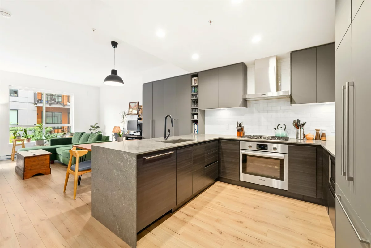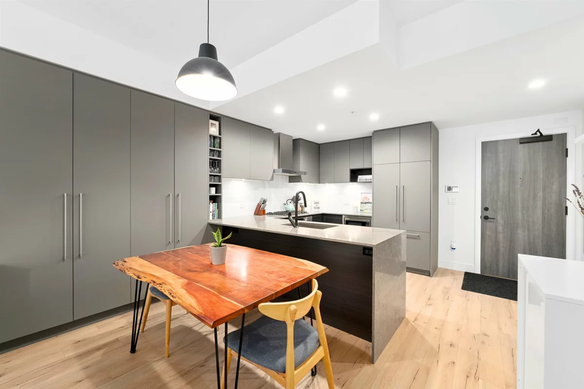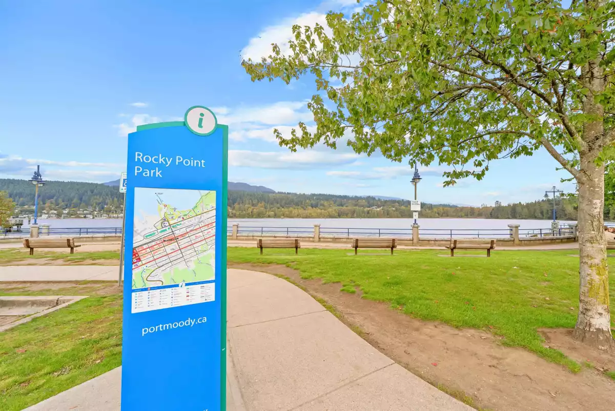 Gorgeous 1 Bed, 661 SQFT Condo in the heart of Port Moody perfectly blends Style, Comfort, & Location!! This GEM features an open concept layout w/ 9 ft ceilings, premium finishings, a designer kitchen, waterfall-edge quartz counters, integrated high-end appliances, & an abundance of cabinets & pantry space!! The bedroom is spacious & tranquil, while the covered balcony is perfect for BBQ's & morning coffee. Amazing amenities: full fitness gym, yoga studio, co-work space, guest suite, children’s playroom, dog-wash station, media/movie lounge & more! Walker's Paradise: Steps to Rocky Point Park, Shoreline Trail, SkyTrain/West Coast Express, trendy cafés, craft breweries, restaurants, shopping, schools, kayaking & more. Includes 1 parking & 1 storage. *Call to schedule your showing today!